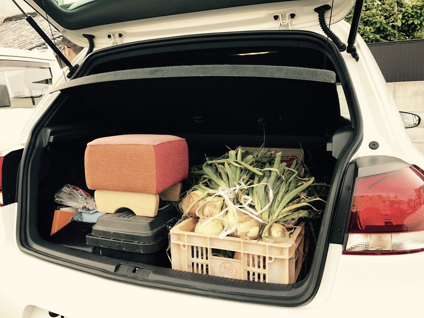 トランクに大量の玉ねぎとフラミンゴw