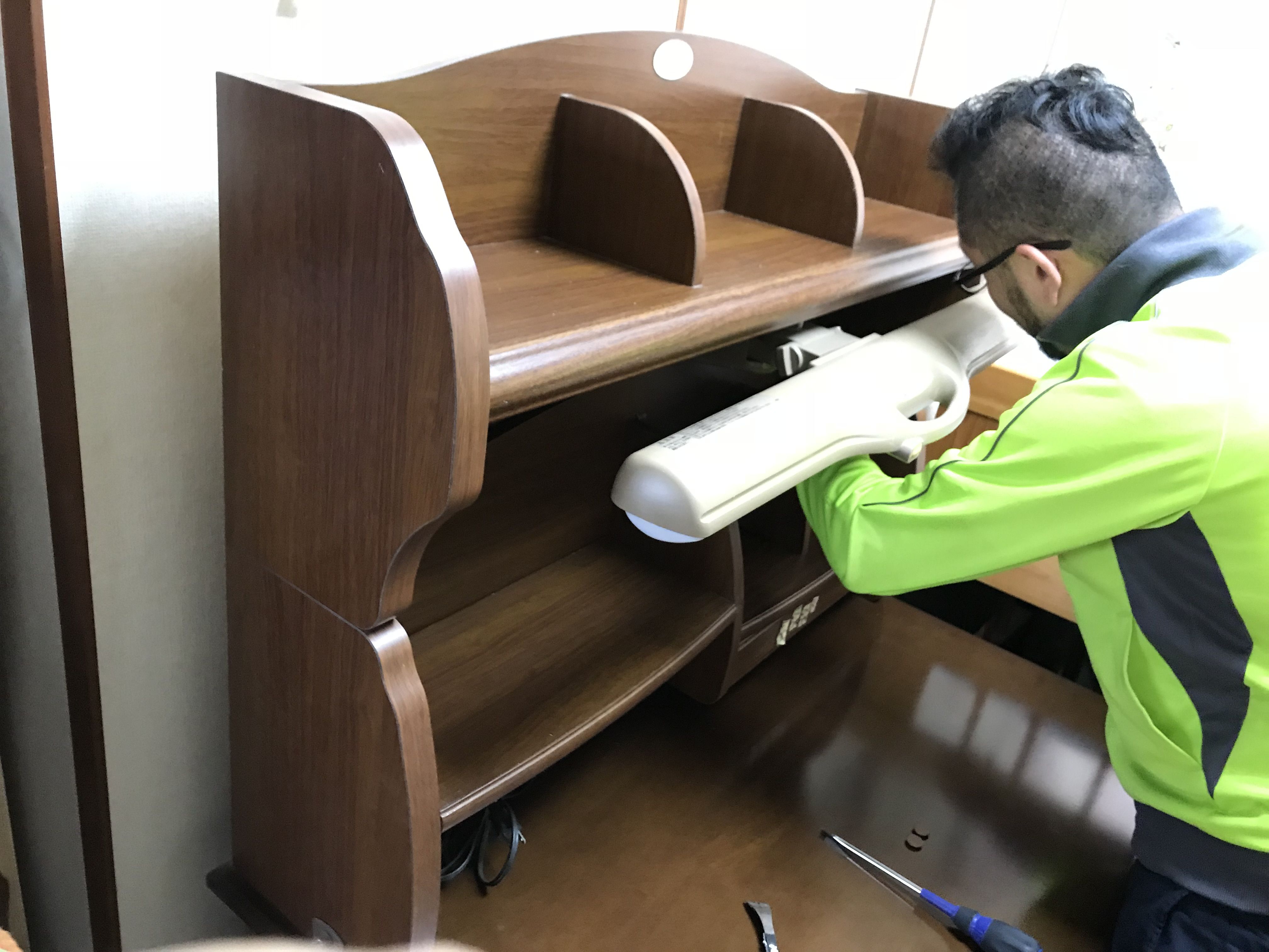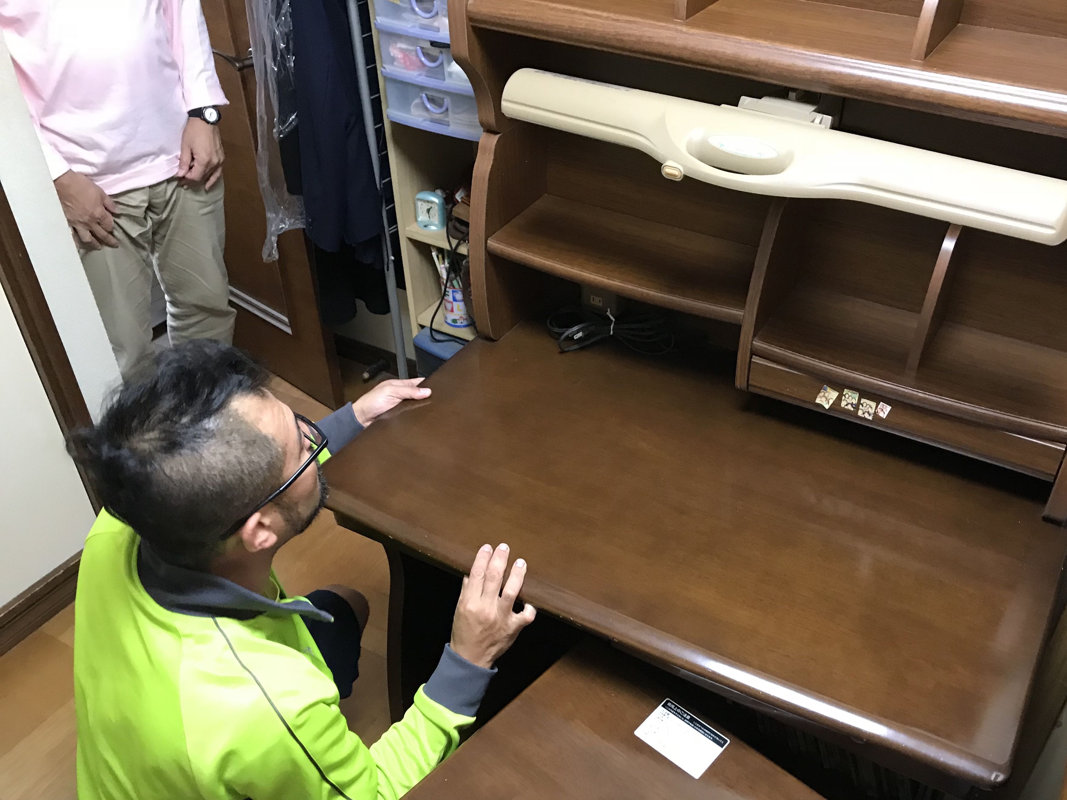 学習机は、大きくて重くて搬出方法を心配される方も多いですが、お引き取りの際はこのように家具作りたいおっさんが瞬時に作りを見分けて、最適な方法で綺麗に分解して搬出できるのでどうぞご心配なく!