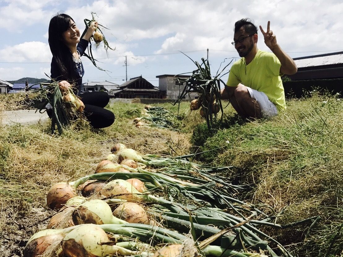 BBQで出会ったタマネギ農家の方に誘ってもらってタマネギ収穫を体験できたり。