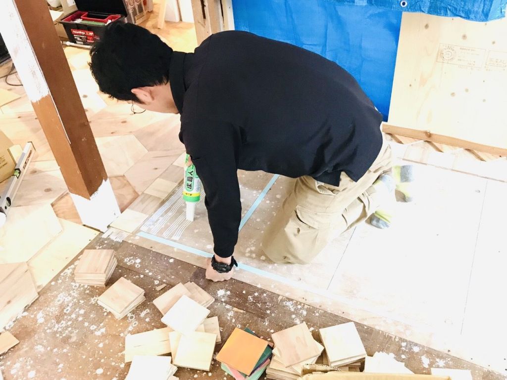 色んな床の模様を楽しめるシモキタベース。新スペースの床が完成♪
