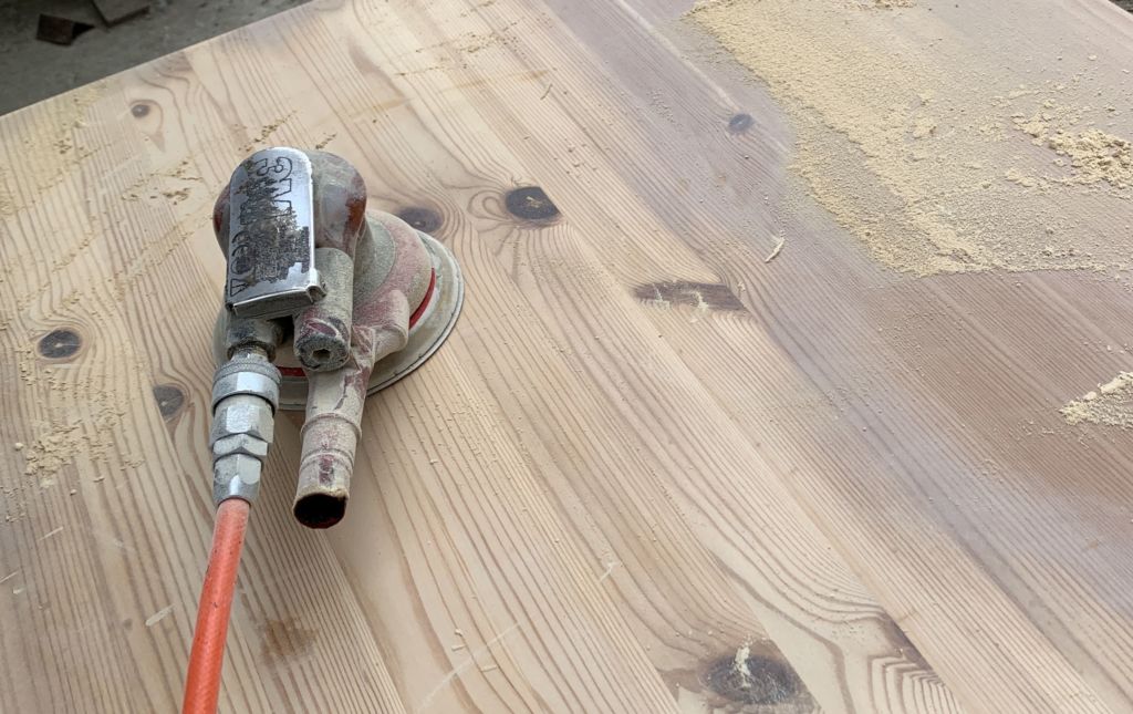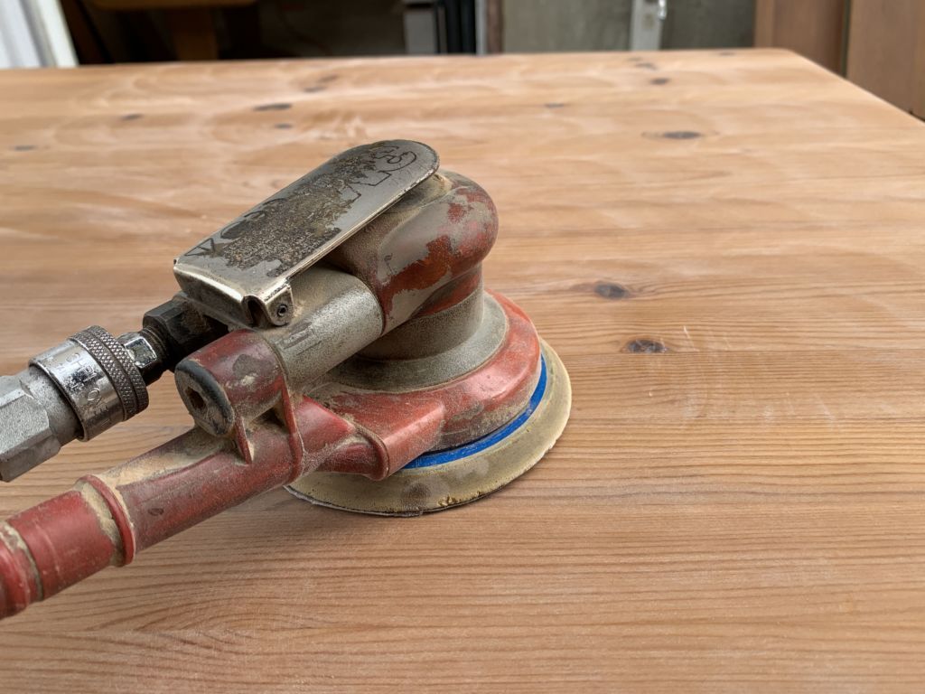 木の家具の表面はそのまま塗装をしても綺麗に塗装できないので、サンディングして表面を滑らかにするのです!