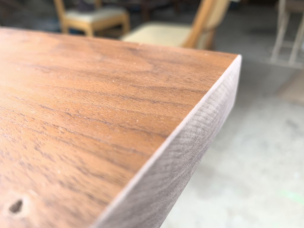 何度も何度もやり直しをさせられ、やっと面のサンディングを終えた天板、いよいよ仕上げです。