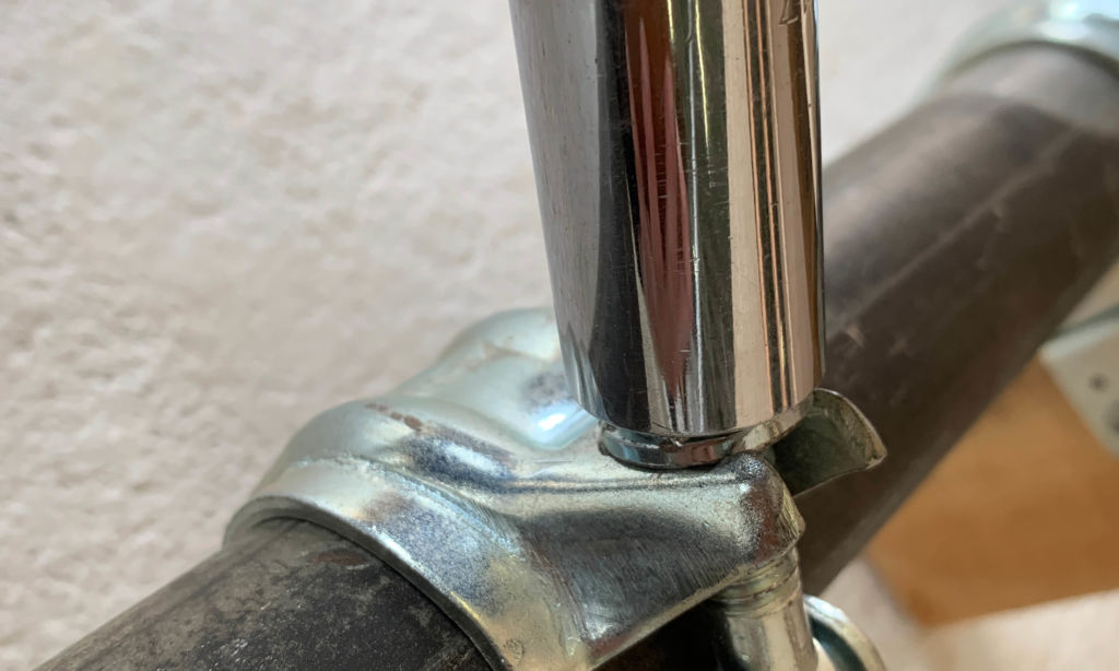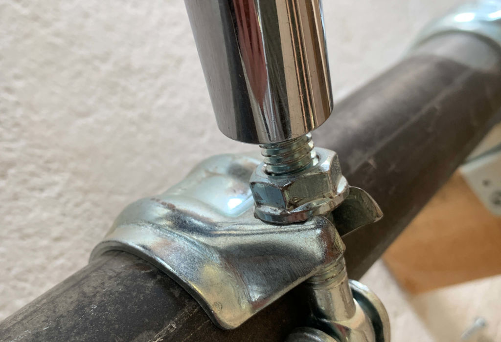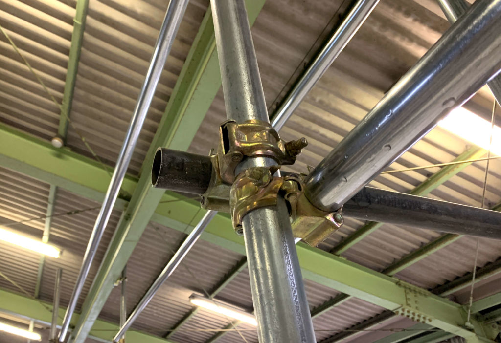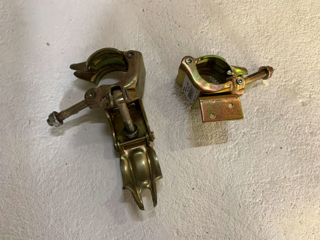 この金具、クランプと呼ばれる単管パイプ同士をつなぐ金具なんです。