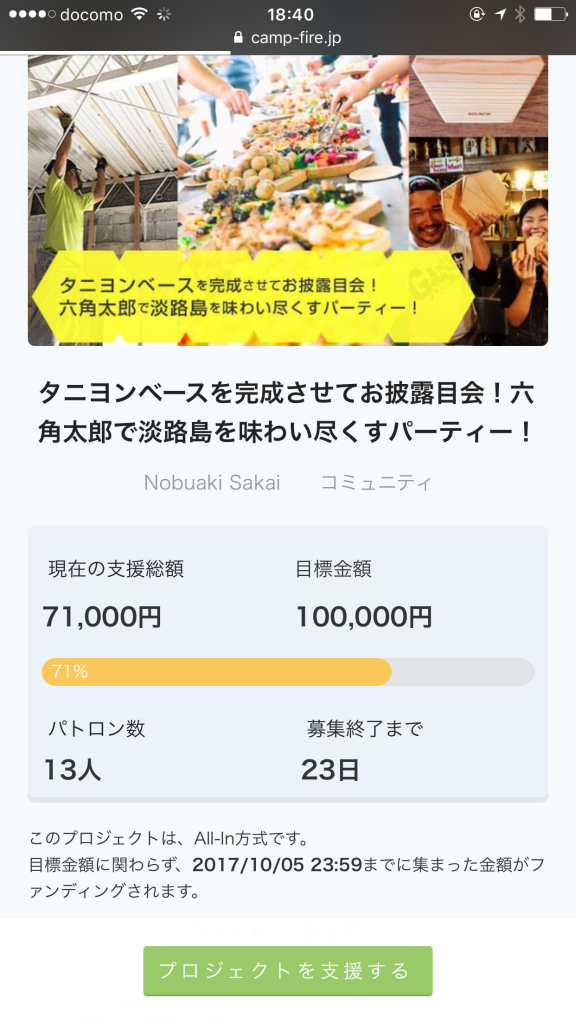 さてさてそんなTANI4BASE(タニヨンベース)ですが、現在クラウドファンディング実施中なんです。