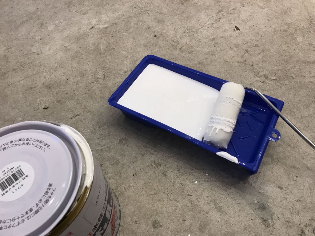 使うのはつや消し白ペンキ、シンプルイズベスト!カラフルな壁なんかもしたいですが、まずは白を塗っておくと間違いありません。迷ったら白ですよ奥さん_φ( ̄ー ̄ )