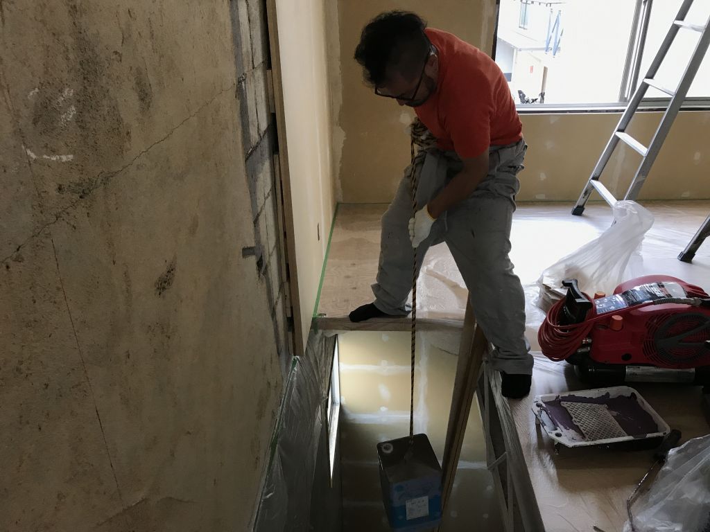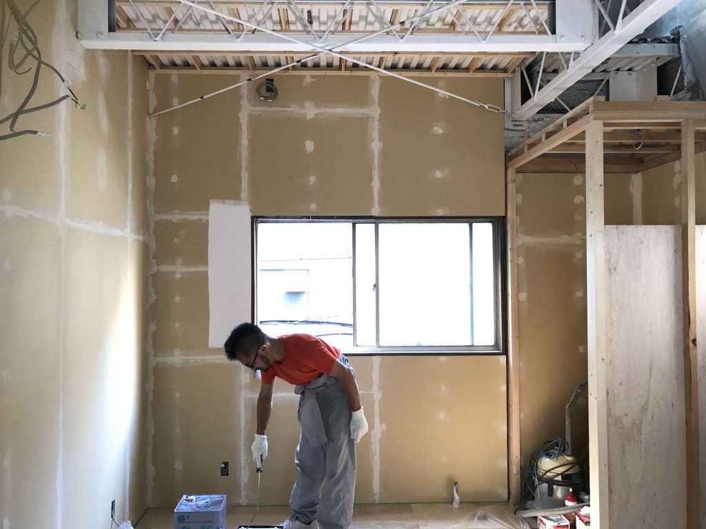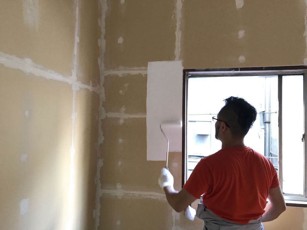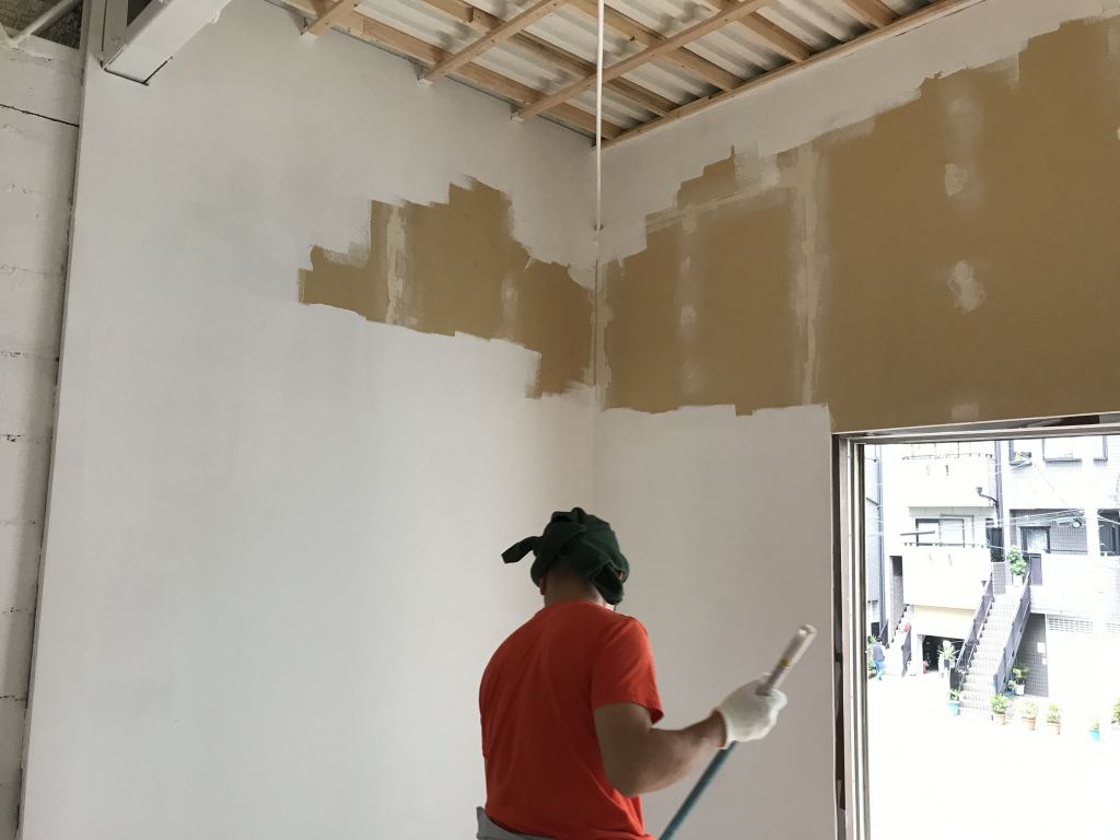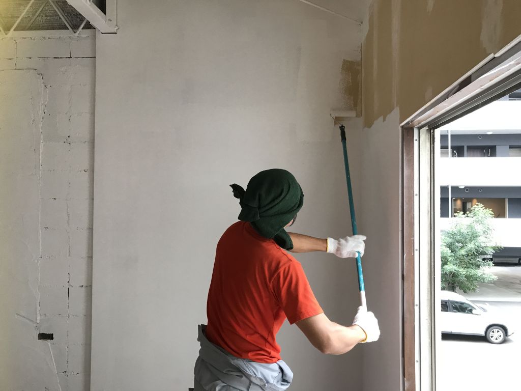 タニヨンベースのセルフリノベーション工事、いよいよ壁面の塗装のターンに入ってきました。壁面の塗装って大変そうですが、実はとっても簡単、今日はそんな壁面塗装の様子をご紹介します。