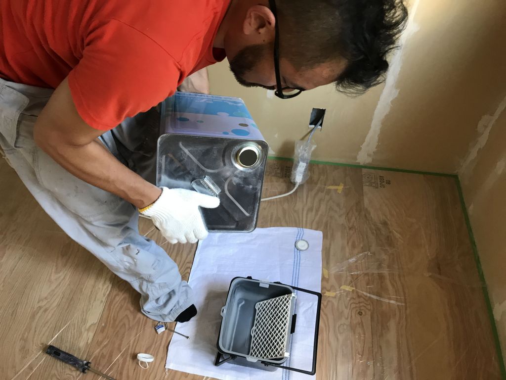 きちんと養生しておけばどんどん塗れるので作業がはかどります。養生と共に荷物や道具もきちんと片付けて置いておくことで作業の質が上がります。