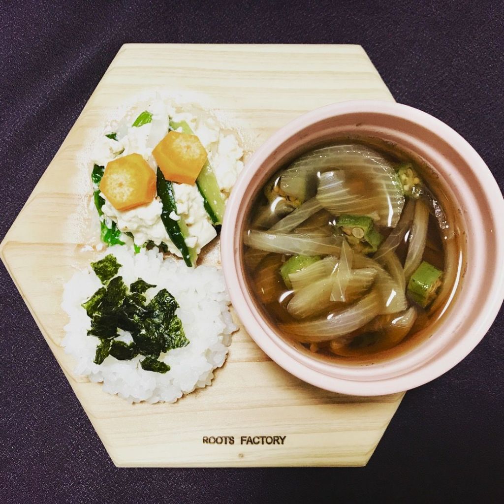 ラストだから、ちょっと豪華にするとか、逆に超質素にしてみるとか考えたんですけど、いや、待てよ、これを「日常」にしたいな、と思って飾らないメニューにしてみました。あ、でも3日間六角太郎お疲れさまの気持ちをこめて、ニンジンを六角形にしてみましたw