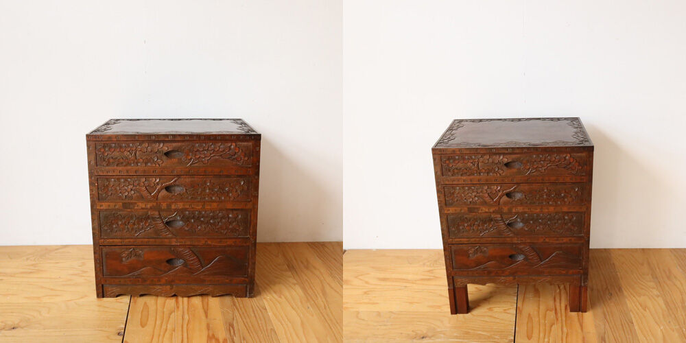 こちらのドロワー、全面に飾り彫が施されており、フォルムも複雑なため単純な形状の脚を継ぎ足すと浮いてしまいます。さらに、元の脚部分と同じ太さで継ぎ足そうと思ったら強度が出せないといった難題がありました。