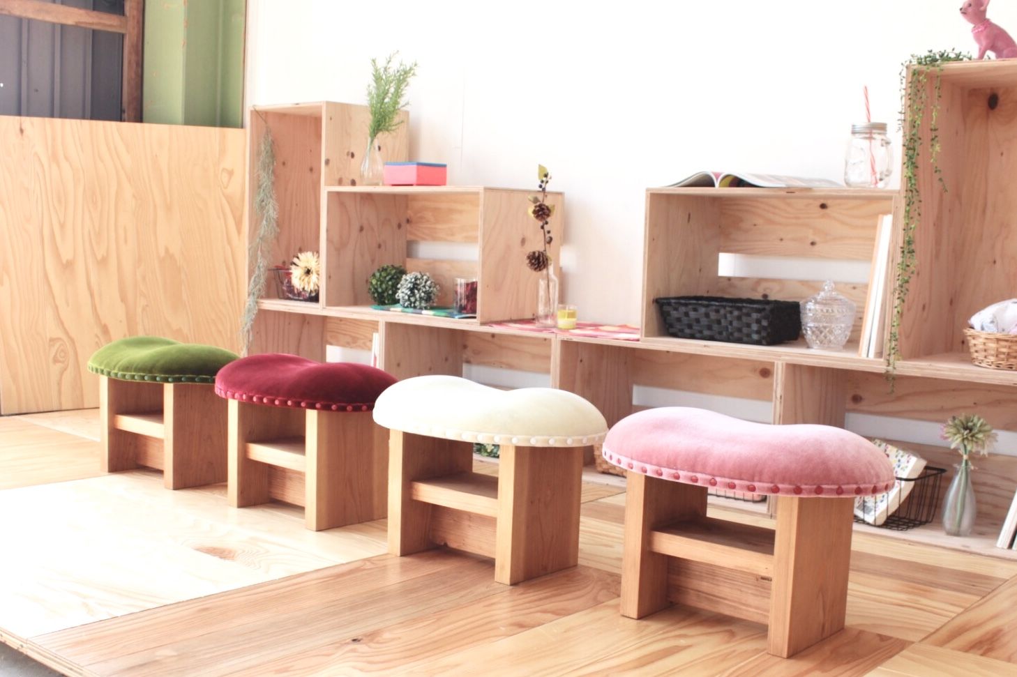 その名の通り、キノコのようなかわいい見た目に座り心地が抜群の「キノコスツール」など、オリジナルの個性的な椅子がたくさんあります!
