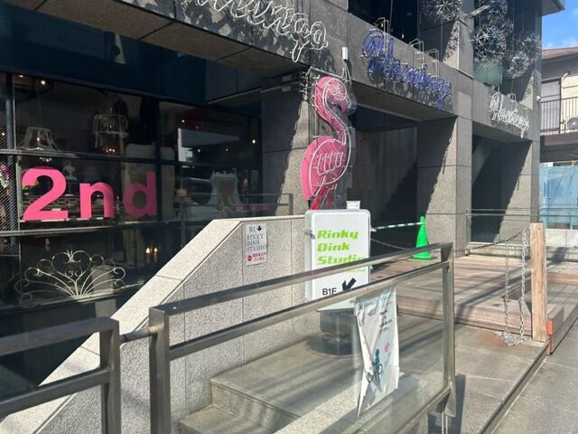 そして右手に大きなフラミンゴが目印の古着屋さんを前に右に曲がります。