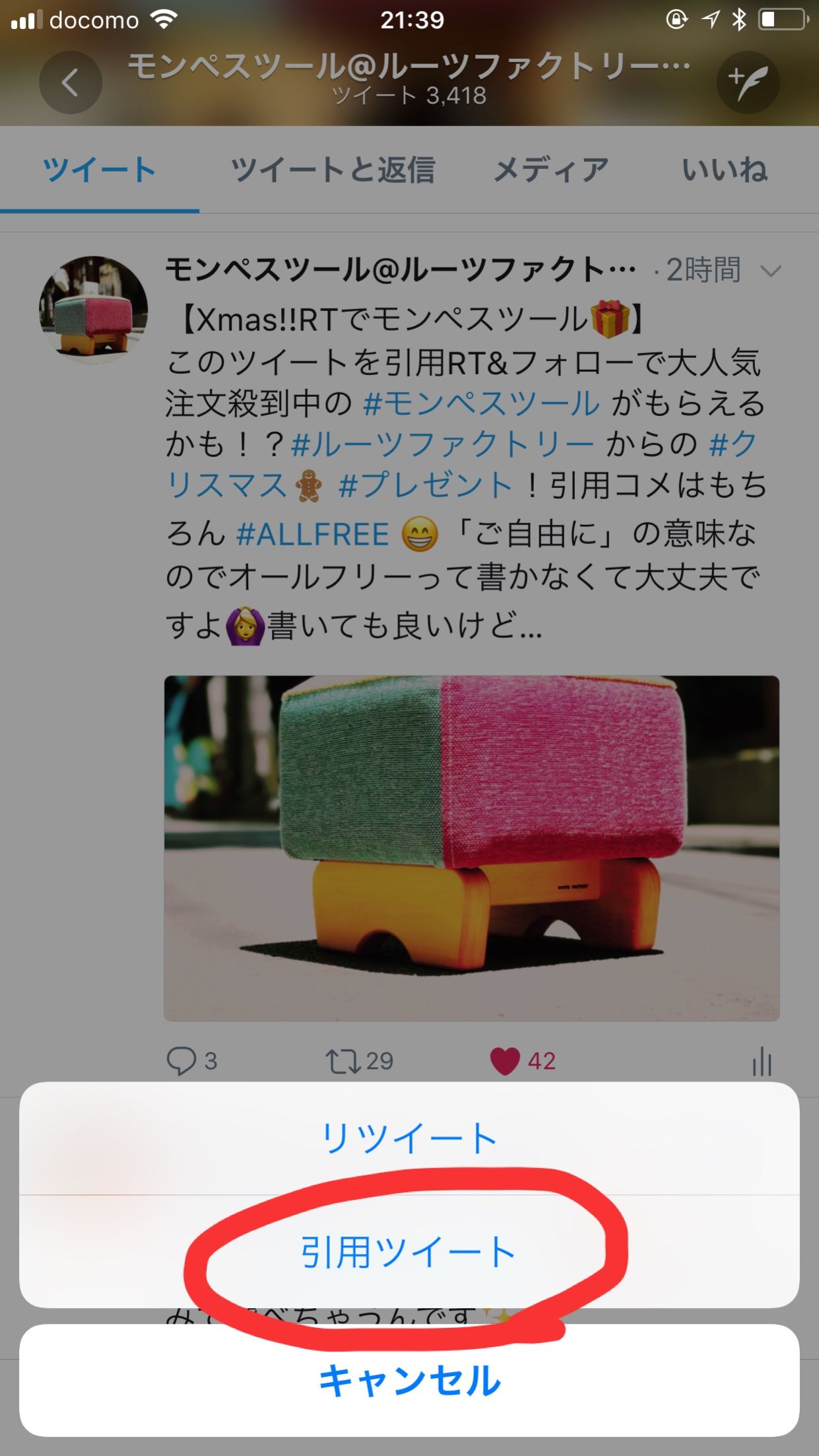 このツイートを引用RT&フォローで大人気注文殺到中の #モンペスツール がもらえるかも!?#ルーツファクトリー からの #クリスマス #プレゼント!引用コメはもちろん #ALLFREE 😁「ご自由に」の意味なのでオールフリーって書かなくて大丈夫ですよ🙆書いても良いけど… pic.twitter.com/I9fC3opYgw— モンペスツール@ルーツファクトリー東京 (@monpestool) 2017年12月23日