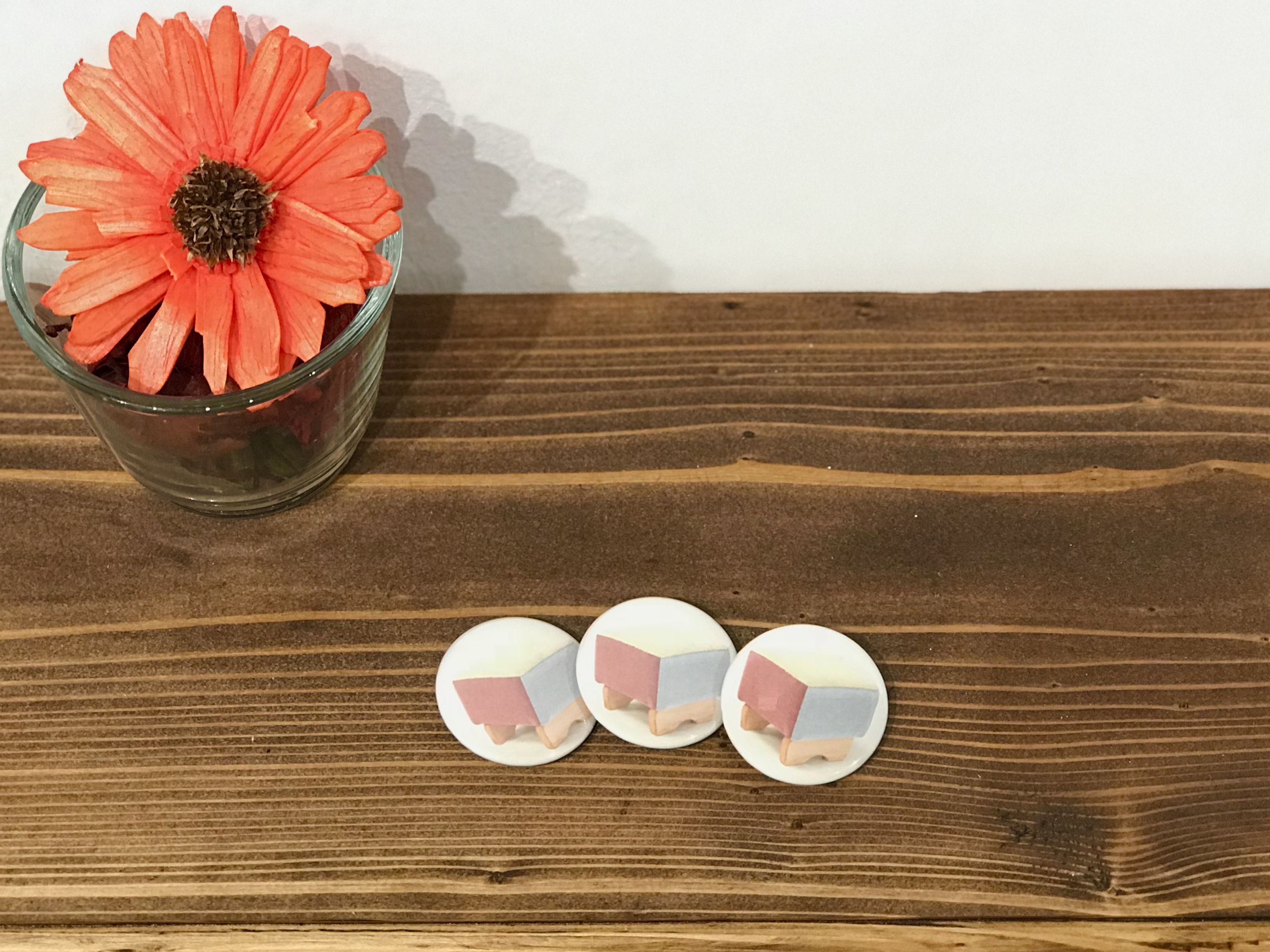 香取慎吾さんもピクニック気分で使っていると言ってくださったモンペツール『ピクニック』。バッグや帽子などに付けられる缶バッジをご用意しました。