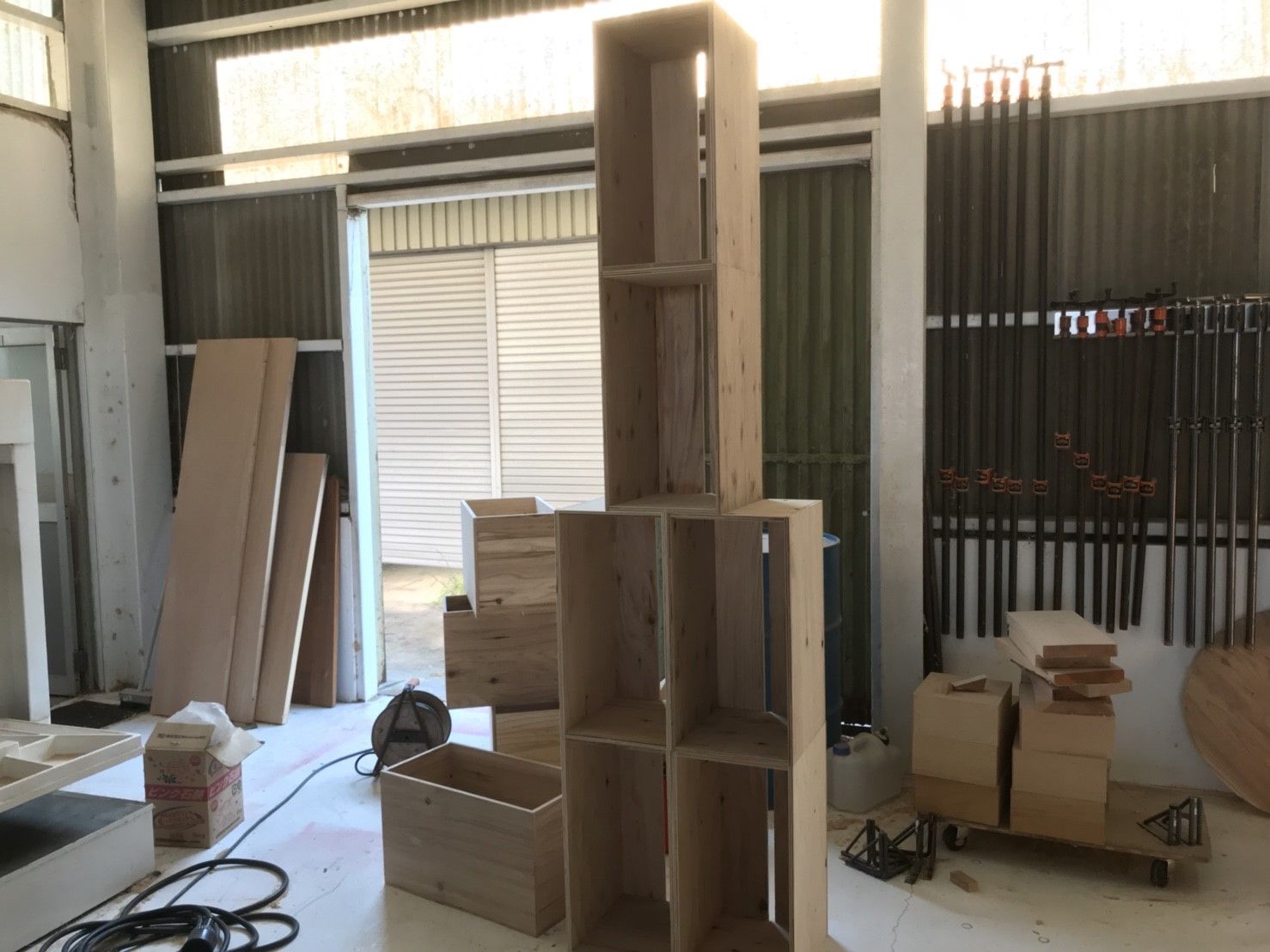 ↑積み重ねた『RINGO-BAKO』の上にハンギングの為の下地を造作しています