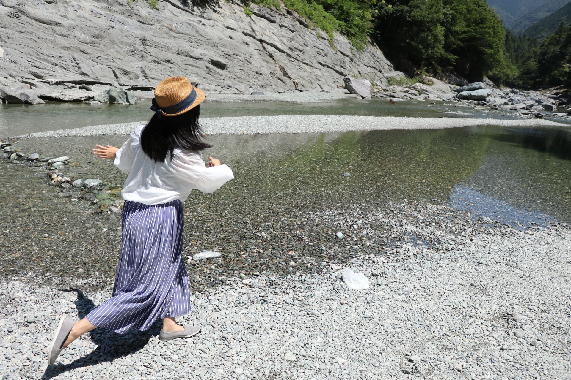 夏といえば川で水切りだよね♪てへっ