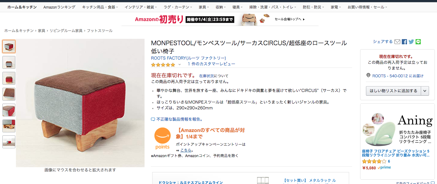 出品中(でも売切れ中)のモンペスツールのAmazonのページ