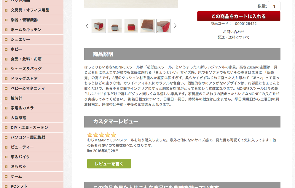 Amazonに出品中(でも売切れ中)のモンペスツールのレビュー