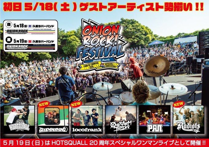 『ONION ROCK FESTIVAL 2019』5月18日&19日を目前に、先行予約販売開始です!!