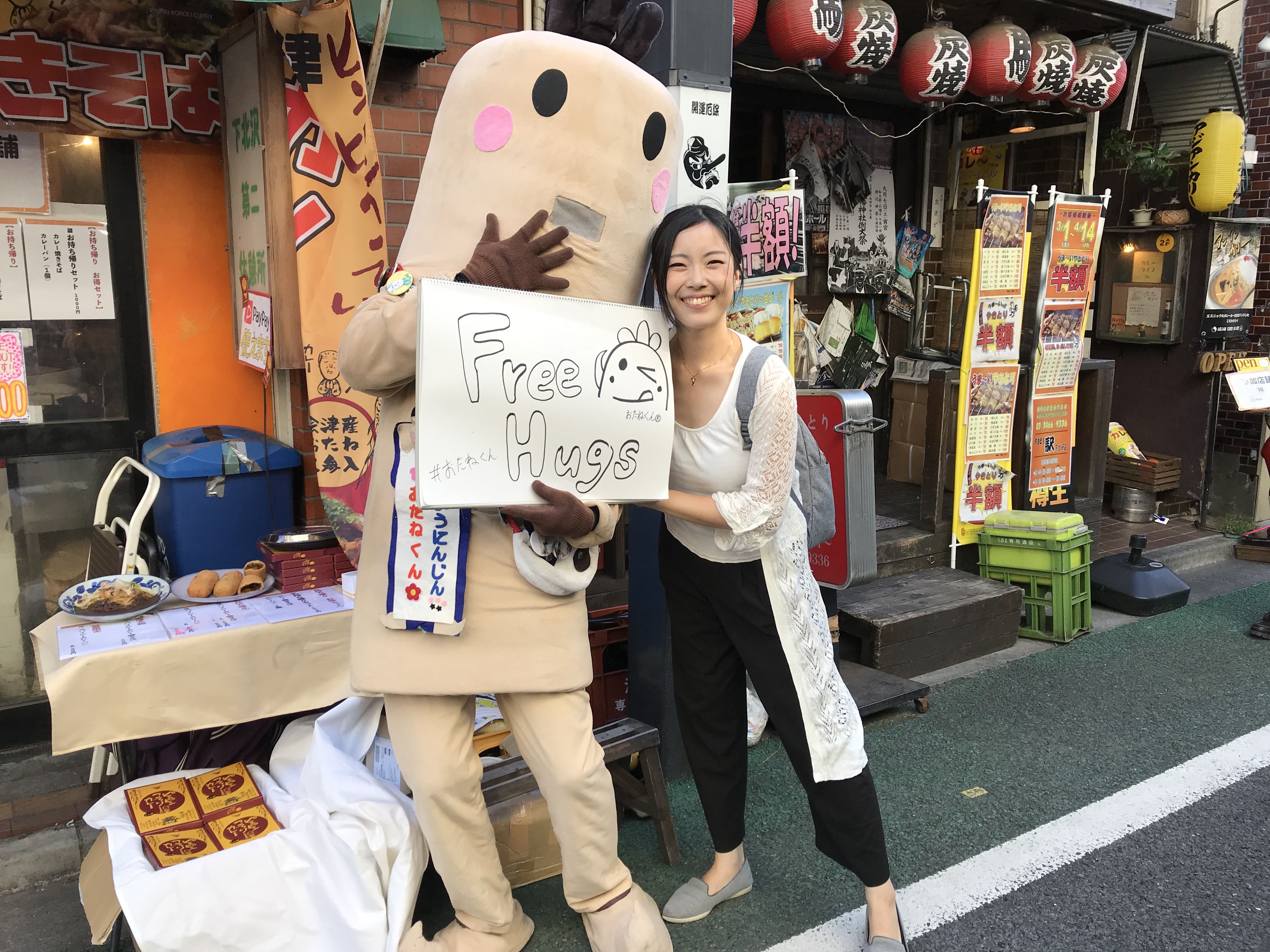 「FREE HUG」って掲げてたので、ハグお願いしちゃいましたw