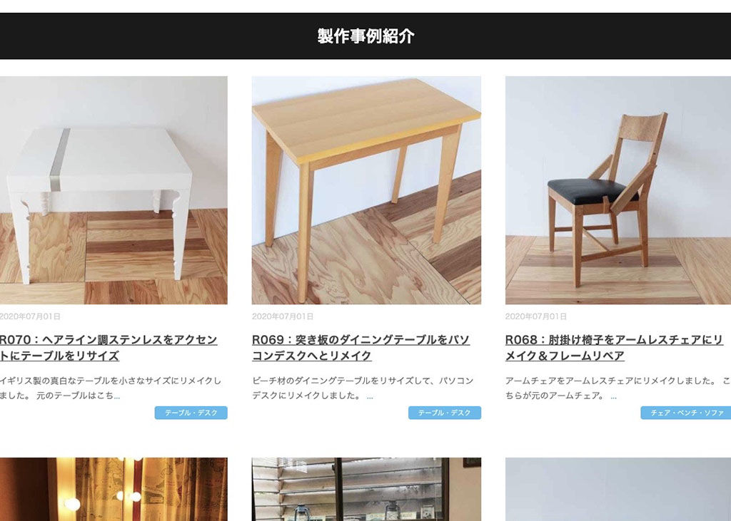 でも婚礼タンスやダイニングテーブル、学習机やベビーベッドのリメイク、椅子やソファの張り替え・修理など、様々な家具のリメイクが一覧でご覧いただけますよ〜!