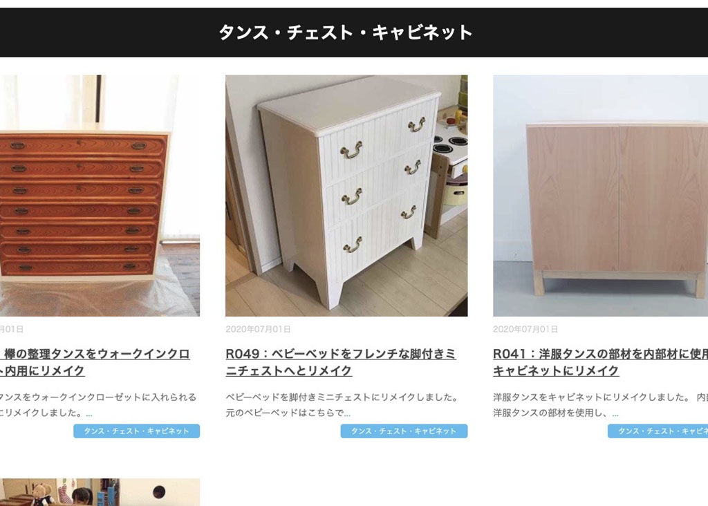 様々な家具から、タンスやチェスト、キャビネットにリメイクした事例がズラリと表示されます。