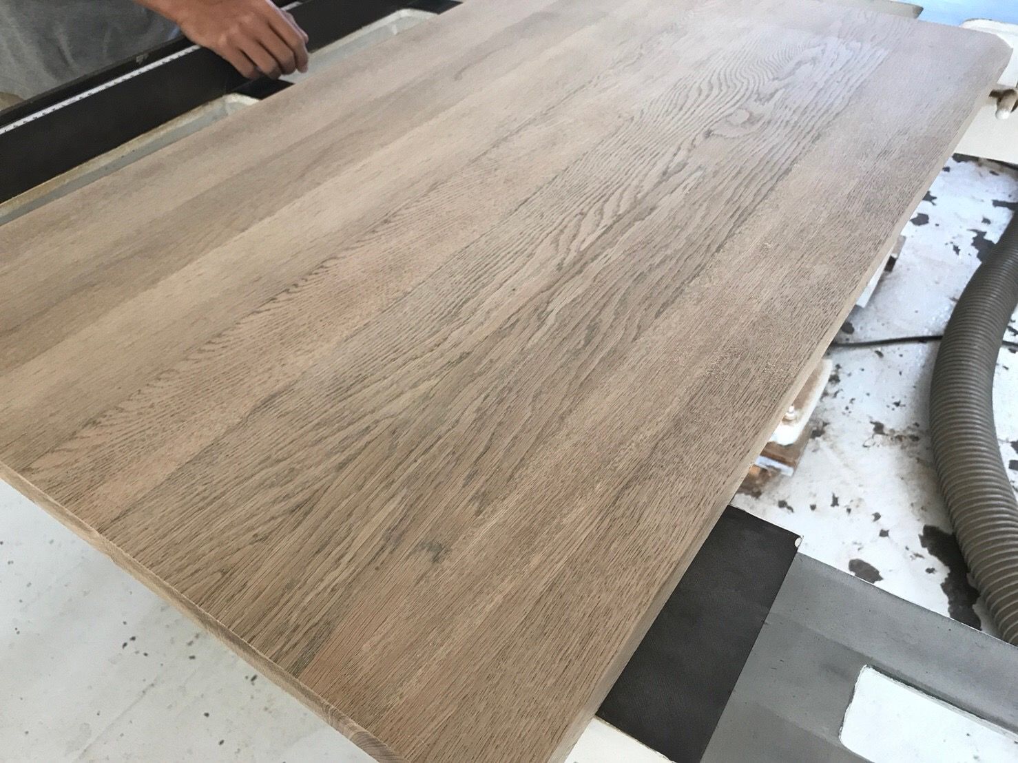 ROOTS FACTORYでは、お客様からご要望があれば天板を拡張する加工をすることもできますが、やはり元のサイズ以内で切り出す方が加工はシンプルです。今回は無垢材だったのでなおさら、削れば新しい肌が出てくるし、サイズ以内であればなんでもできます。