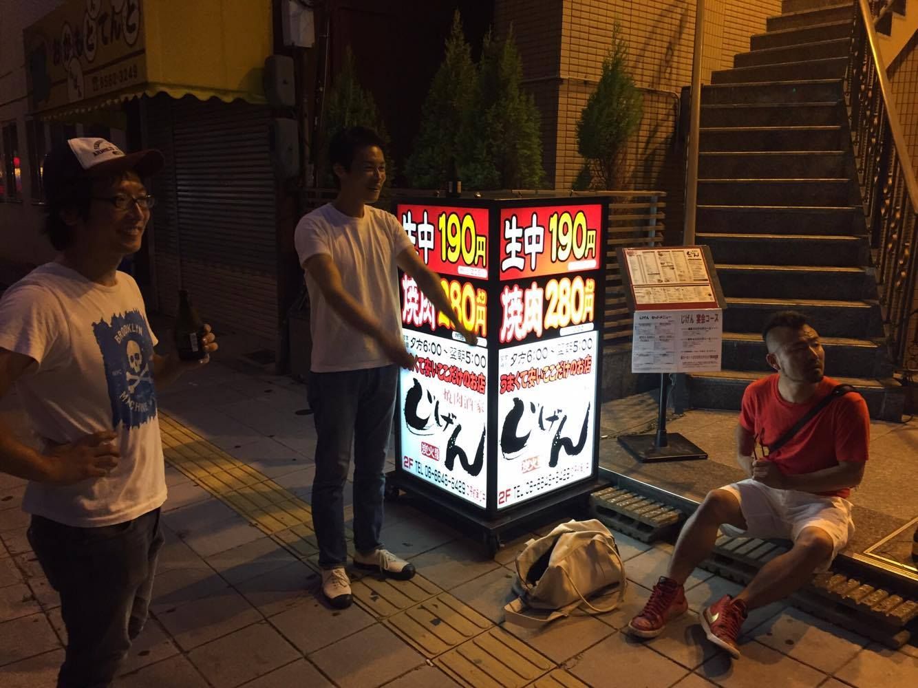 近所のよく行く焼肉屋さんの前で席が空くのを待ってるところ