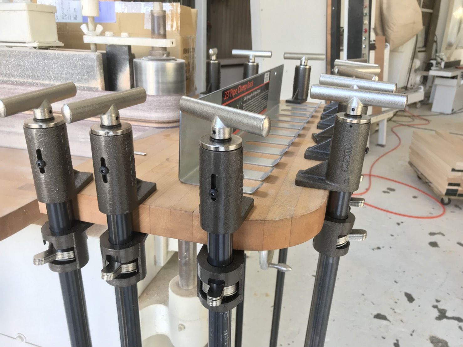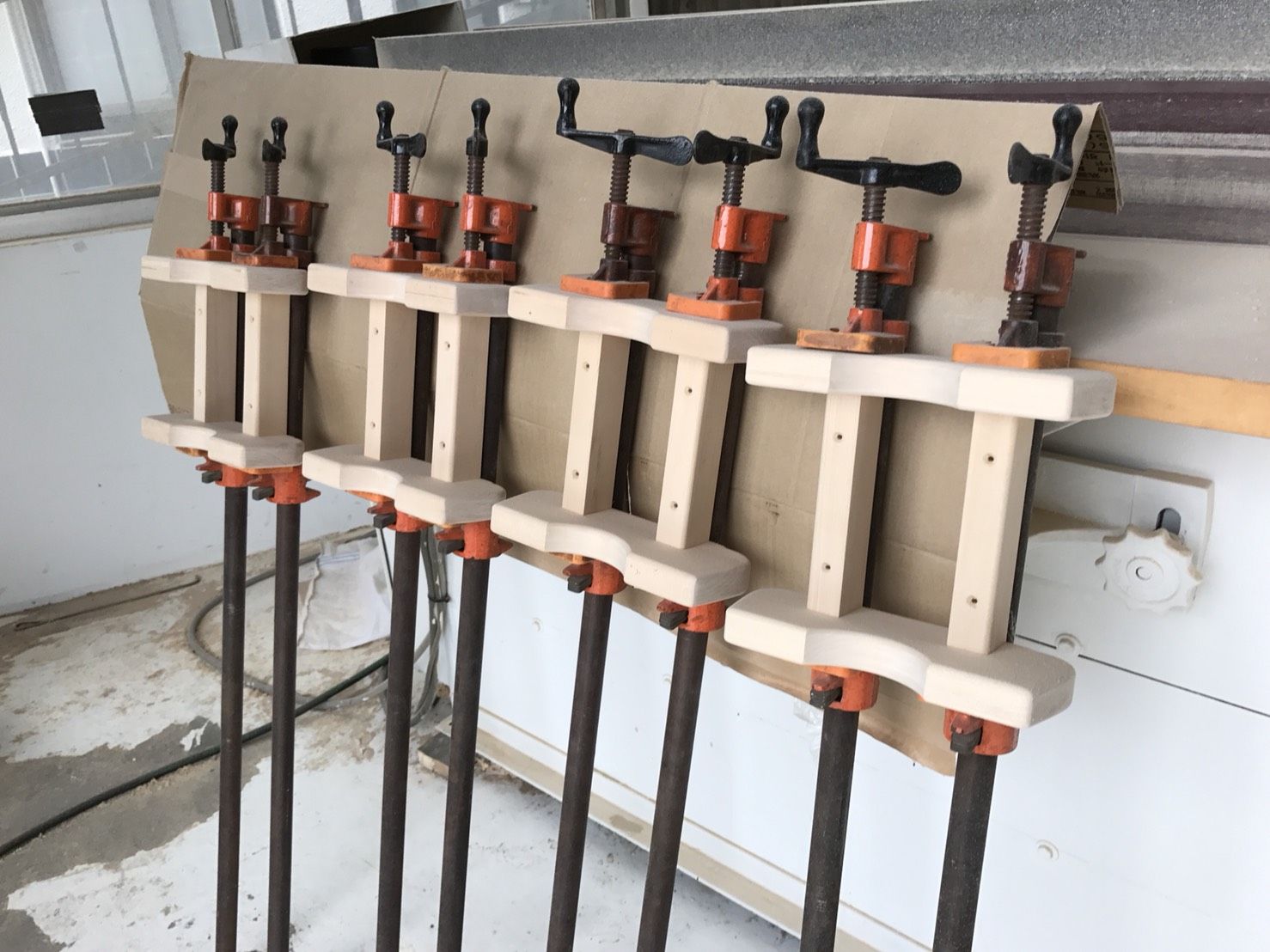 今回、買い換えた訳ではないんです。モンペスツールのご注文殺到のおかげで製作が追いつかず、製作の効率を上げるためにクランプを増やすことになりました。
