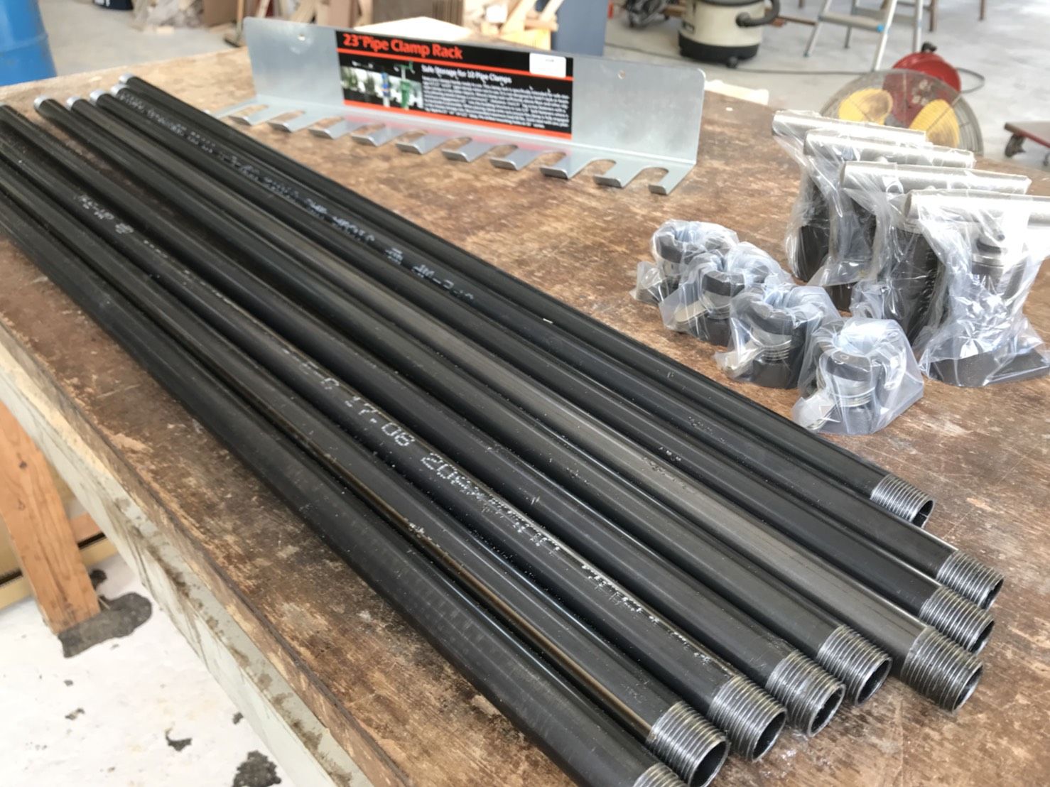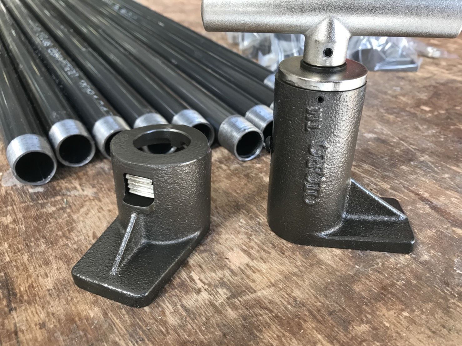 使っていたのは「ポニークランプ」というパイプクランプ。別売りのパイプ(ガス管)と組み合わせて使うクランプで、必要な長さのパイプを用意することで、モノを挟む長さが調節可能な人気のクランプです。