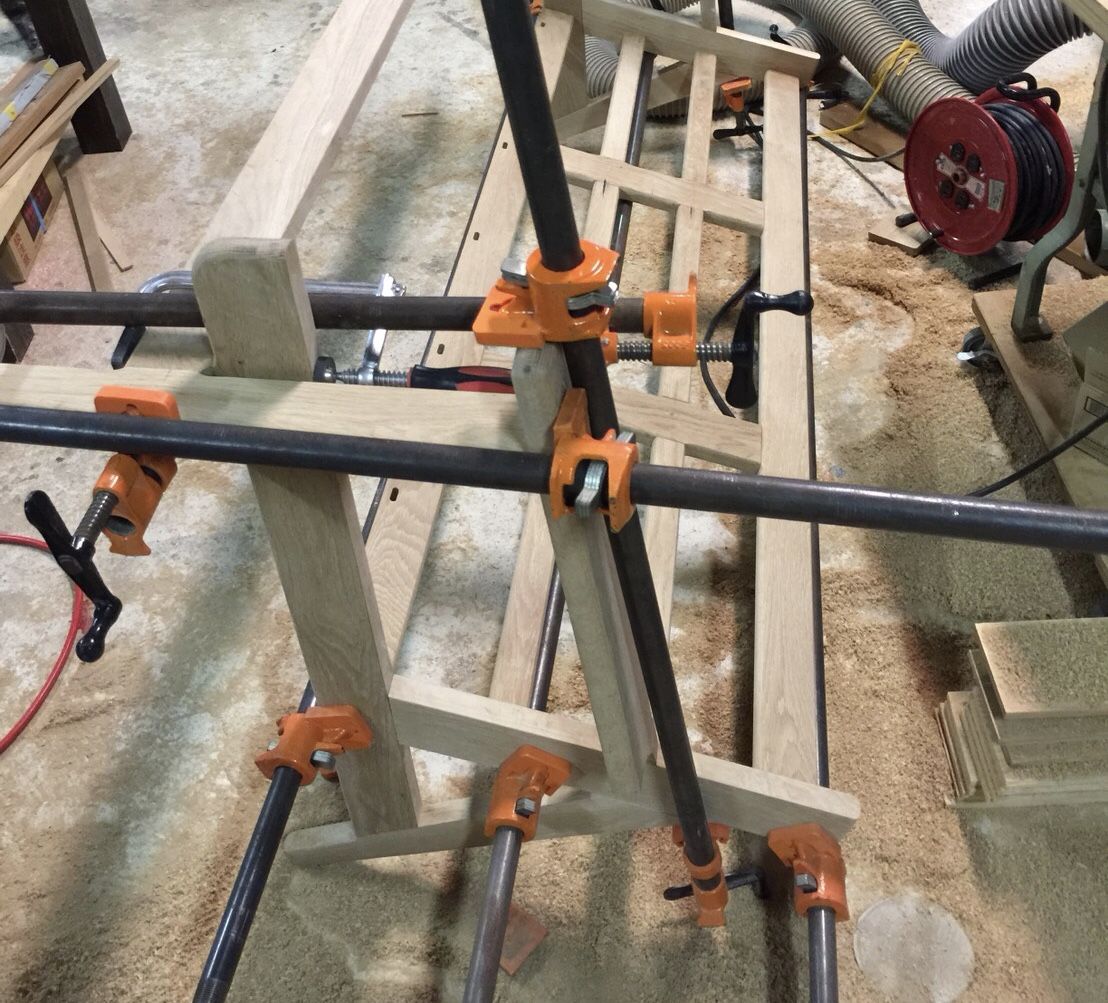 クランプとは木工で必要な道具の基本中の基本なもので、材料を挟んで固定するのに使います。材料を接着する時に、乾燥するまでクランプで挟んで圧着したり、加工の際に固定したりと製作の現場で大活躍の道具です。