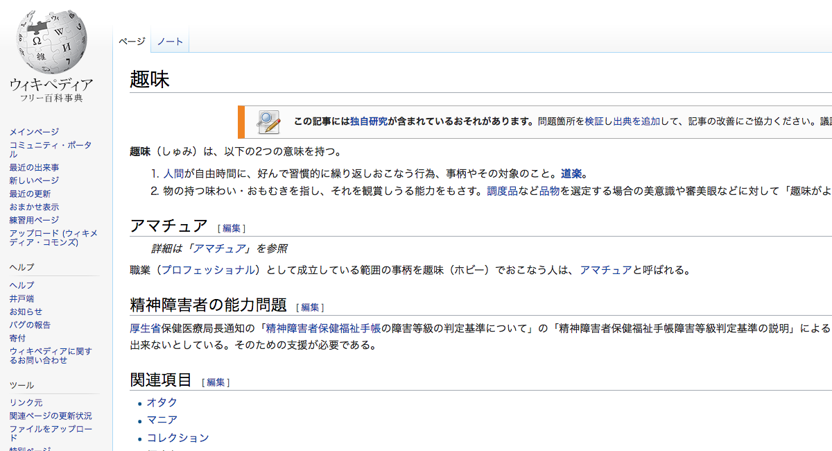 人間が自由時間に、好んで習慣的に繰り返しおこなう行為、事柄やその対象のこと。道楽。職業(プロフェッショナル)として成立している範囲の事柄を趣味(ホビー)でおこなう人は、アマチュアと呼ばれる。