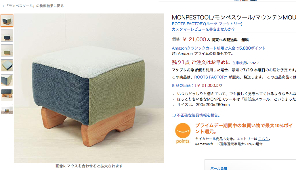 そんなAmazonでなんとルーツファクトリーの人気商品『モンペスツール』が買えちゃうんですよー(^з^)-☆