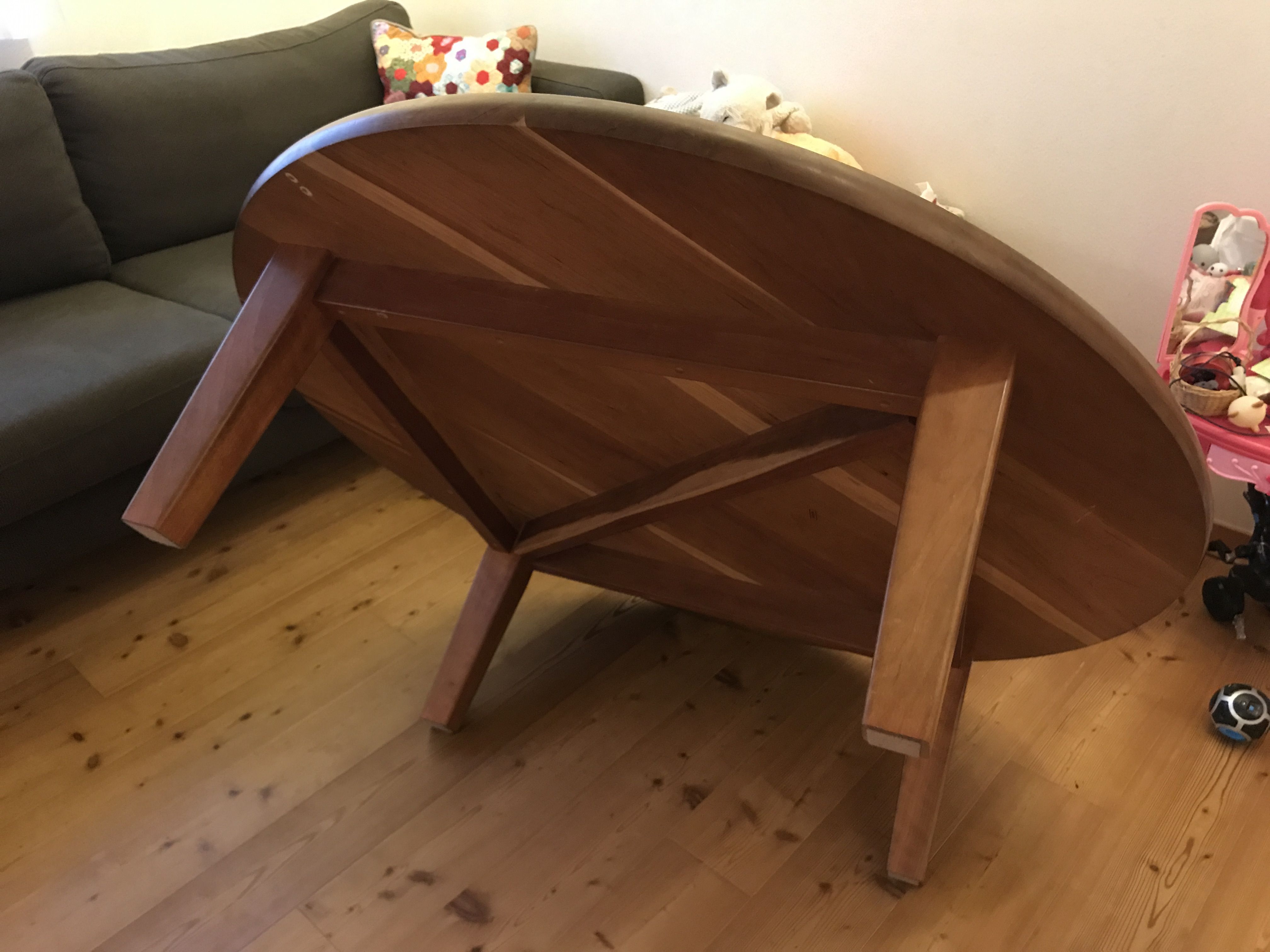 で、今回もまたたくさんのお客様の御宅へお邪魔する訳ですが、これが毎回本当に楽しいんです。今日ご紹介するのは本日お伺いした中で、丸い無垢の座卓のリメイクをご依頼頂いたお客様のお話。