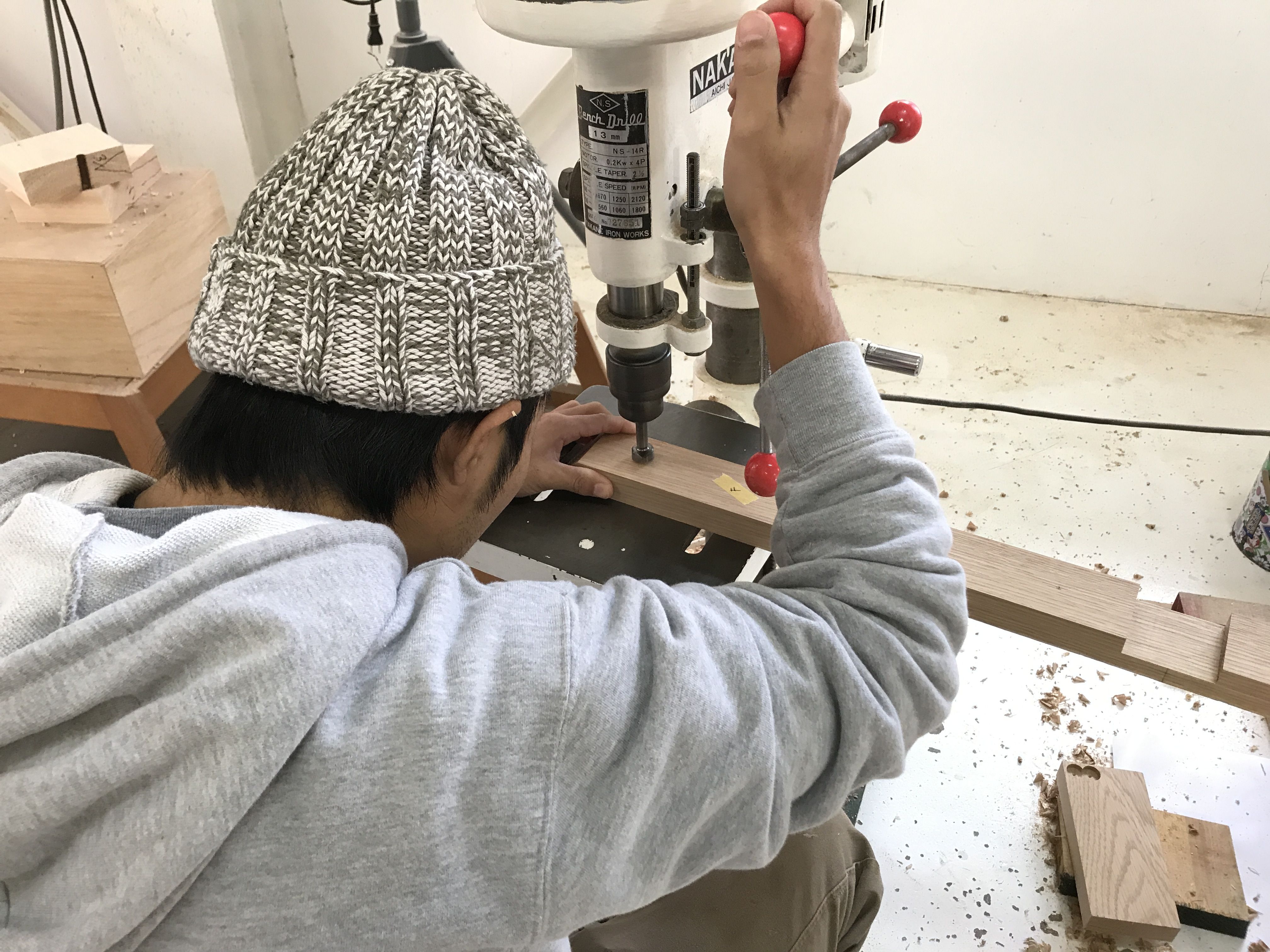 ボール盤ていうのは回転するドリルで丸い穴を開けるための機械なんですけど、そのボール盤の台をつくったんです。