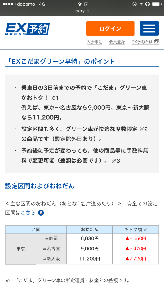 いつもののぞみ自由席(¥13.620)より安い!!これは乗るしかないでしょ?