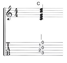 第1線がギターの6弦、第6線がギターの1弦を表しています。