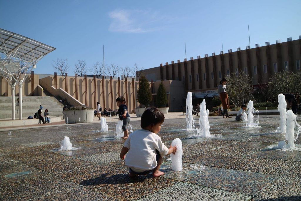 噴水を見つけたら駆け出したので急いで靴を脱がせました。(一緒に行ってた姪っ子も道連れにw)