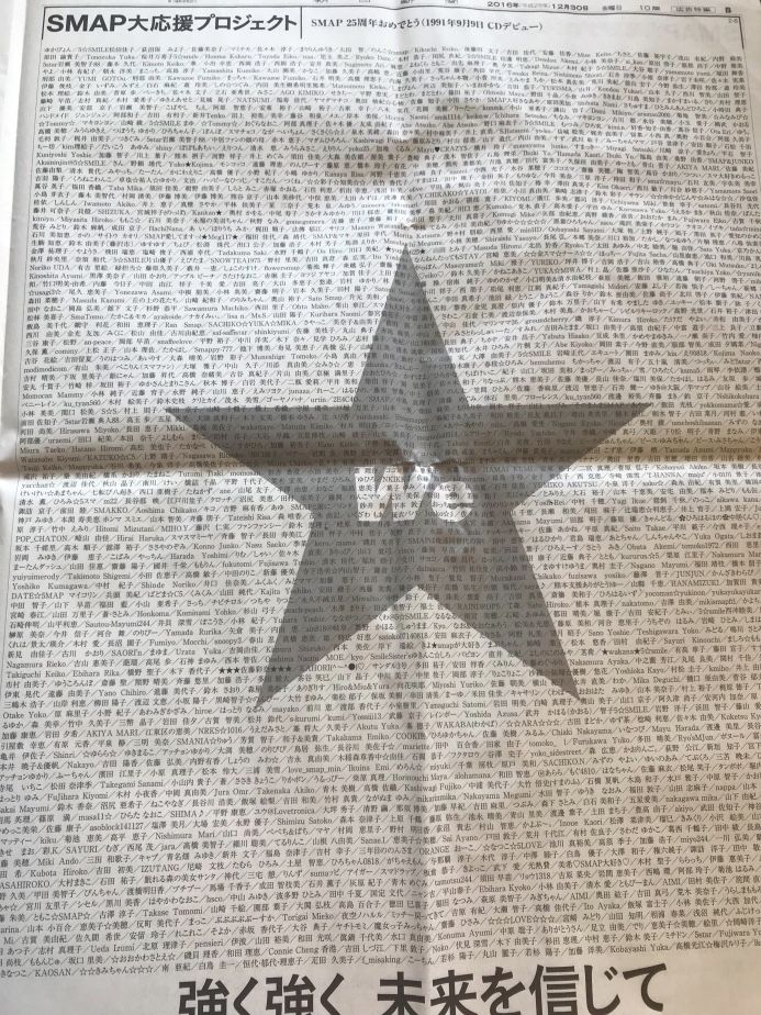 今ではすっかり伝説になった、“SMAP大応援プロジェクト“。クラウドファンディングで集めた資金で、応援メッセージを2016年12月30日の朝日新聞朝刊に、なんと8ページも掲載した一大プロジェクト!