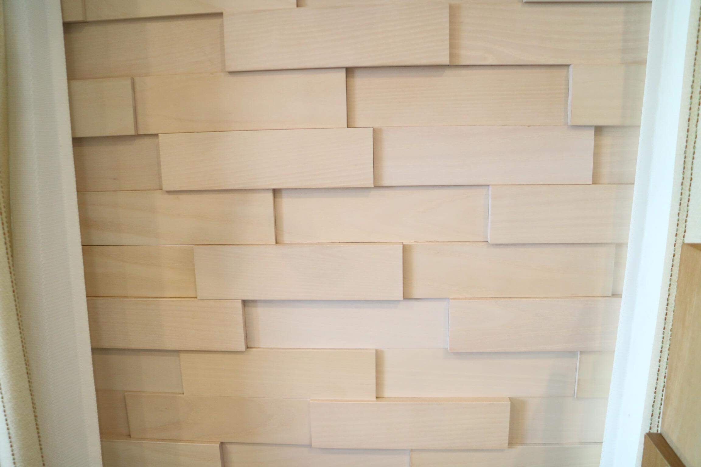 玄関から入ってすぐ見えるレンガ調の壁も、