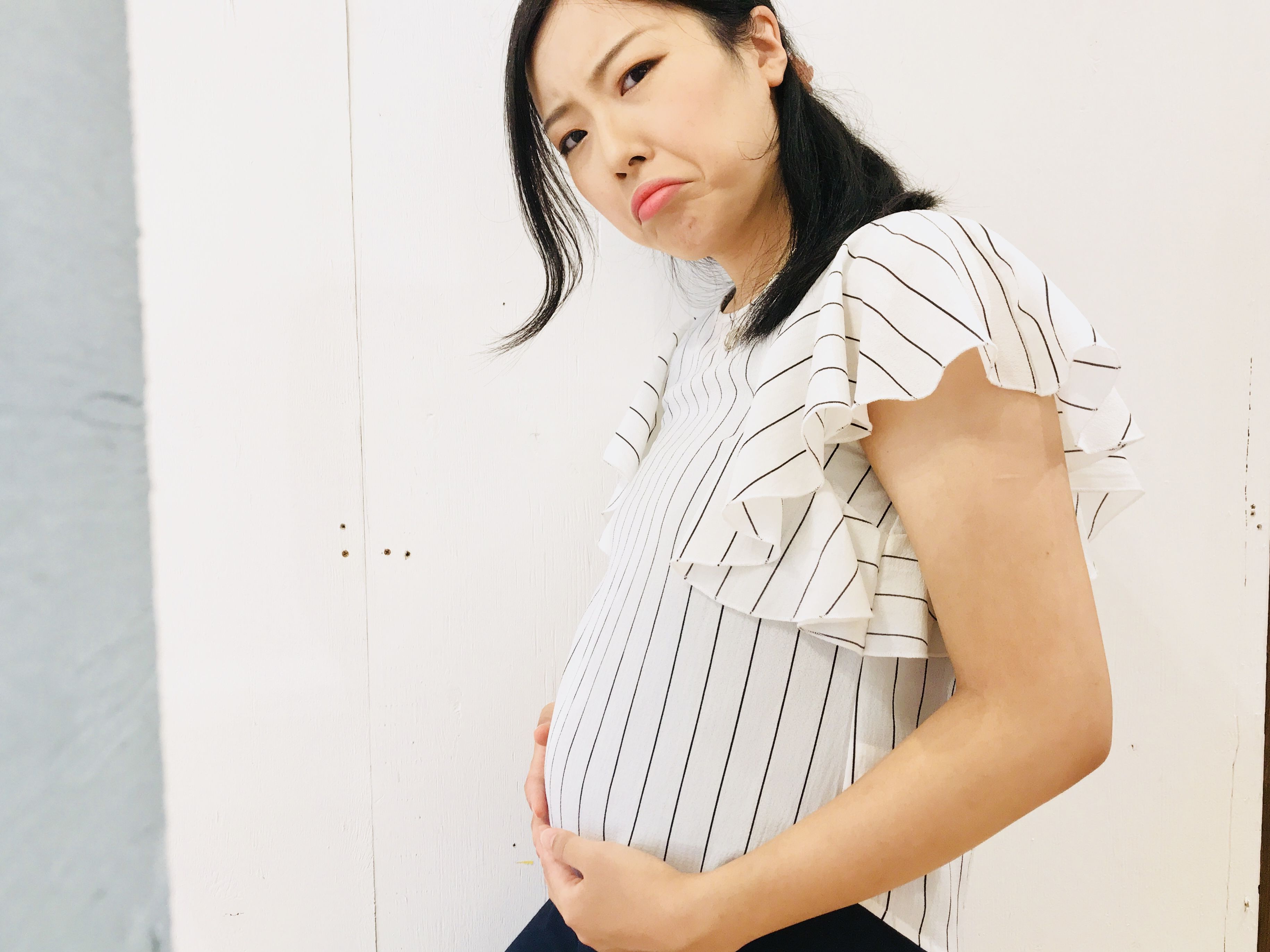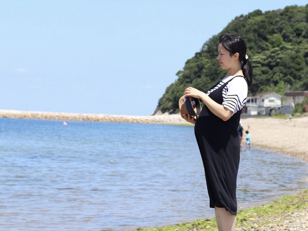 (これは2週間前、淡路島旅行行った時のものだけど、だいぶお腹が目立つ様に。)