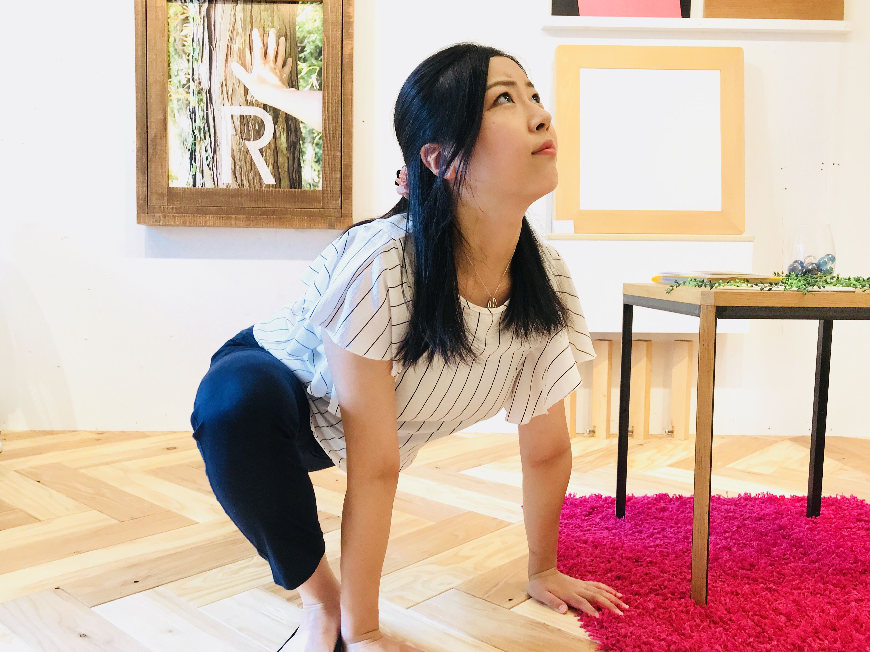 お腹に負担のかからないポーズをゆっくりととっていくと、これまた「効く〜〜〜!!」って感じで。かた〜く凝り固まっていた身体がのびていくのを感じました。