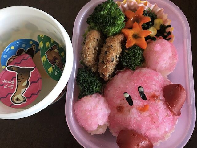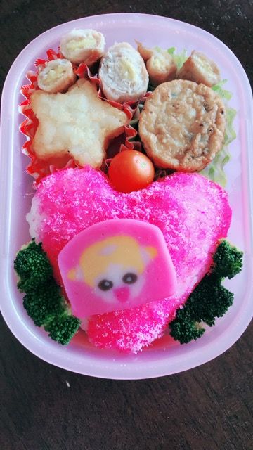 その次のキャラ弁日には、ピンクのあの子を作りました。