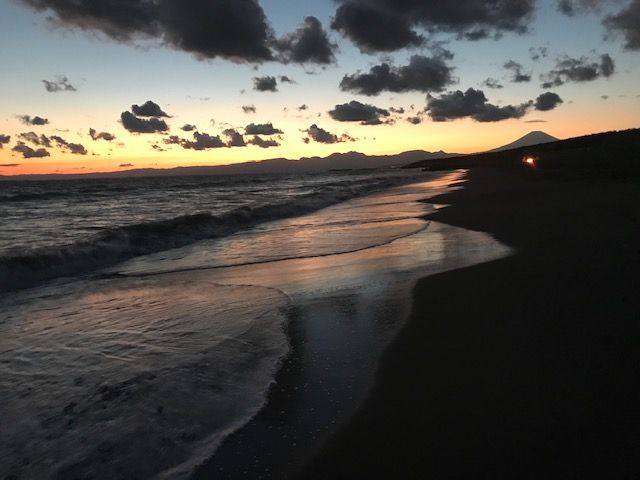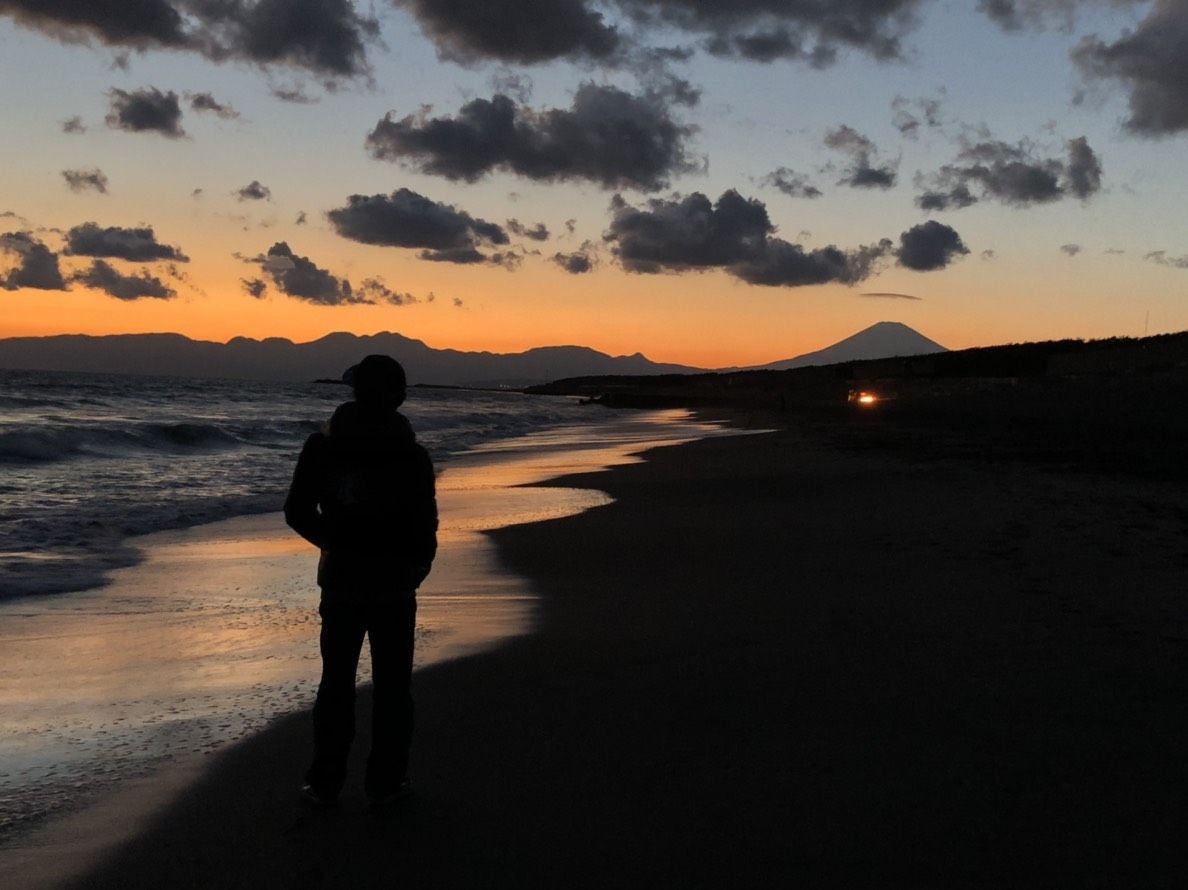 海でぼーっと夕日を見ながら富士山のシルエットを眺めた時でした