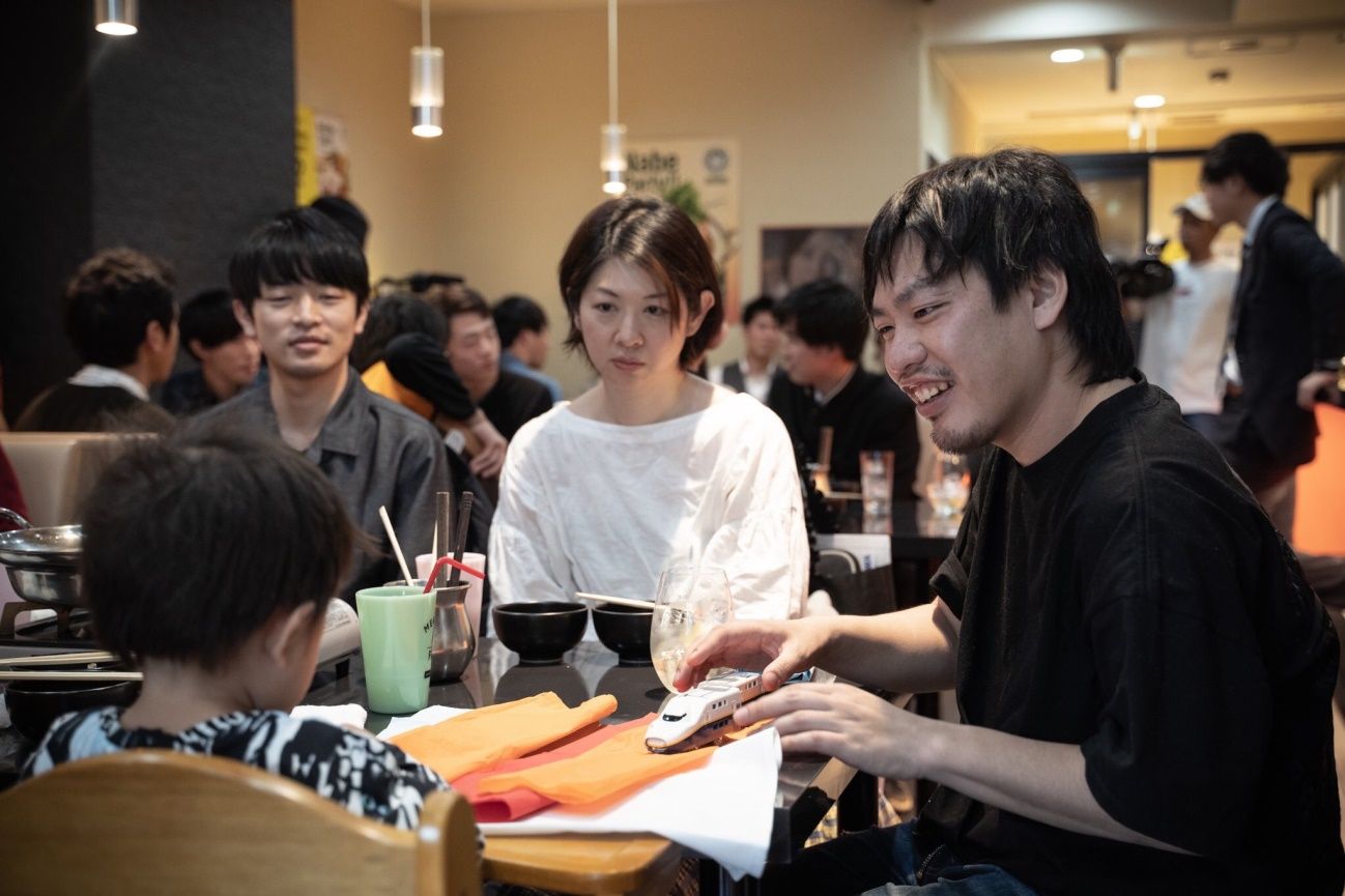 美味しいお肉を食しホッと一息ついた頃に、いよいよ箕輪さんと前田さん登場です。3つに分かれたテーブルに交代で座ってくれるとのことでした。