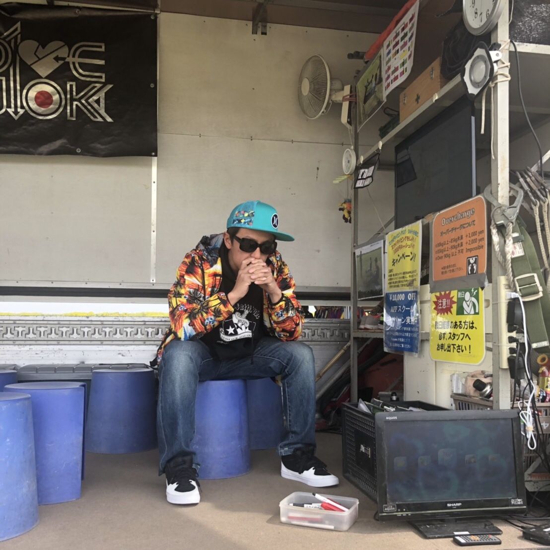 こちらは待ち時間中にスカイダイビングの映像を見て少しナーバスになっている俺です