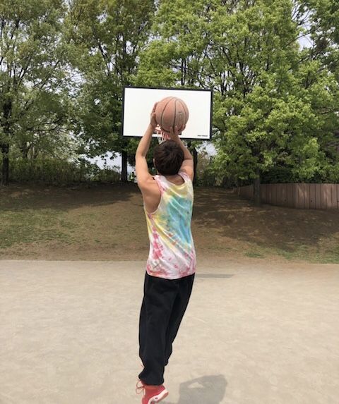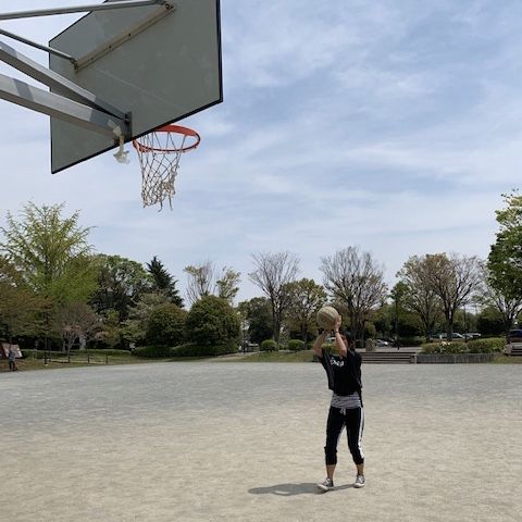体育館前の公園でバスケ!