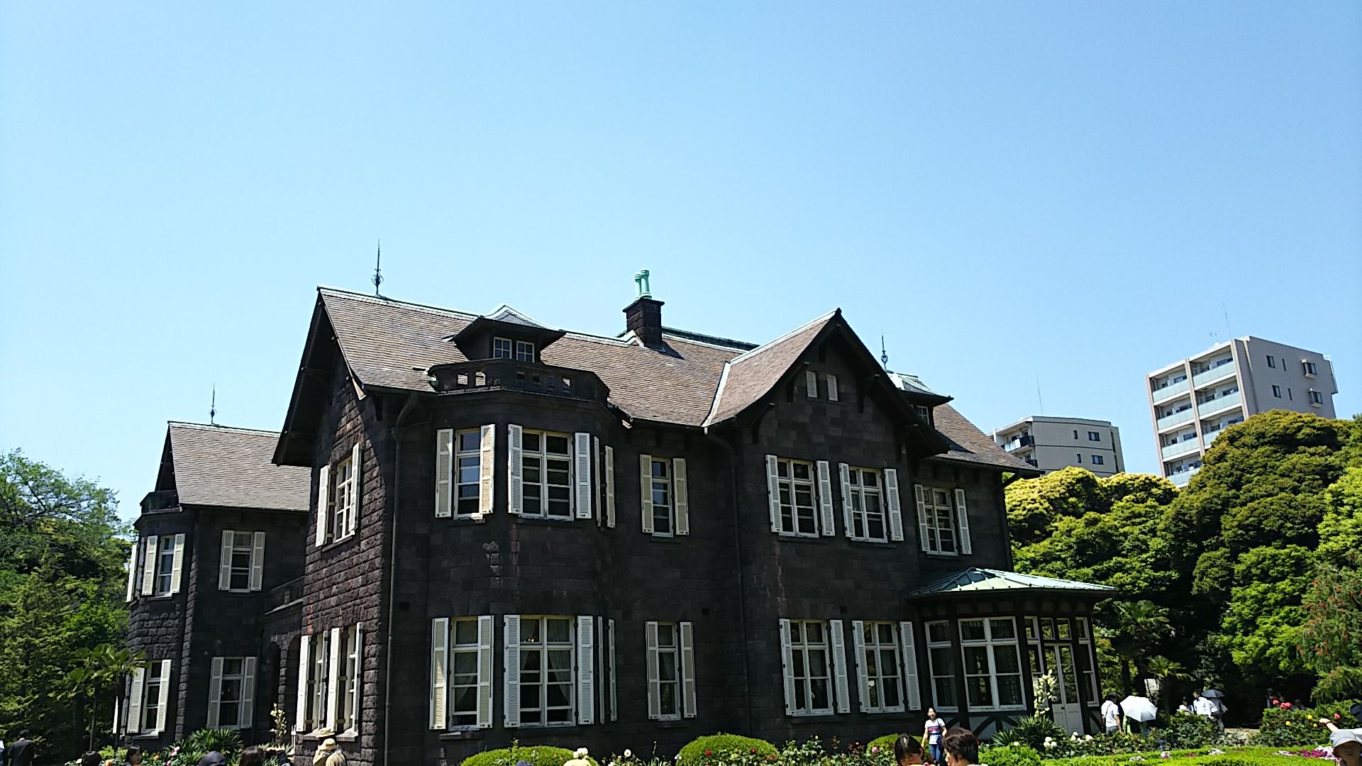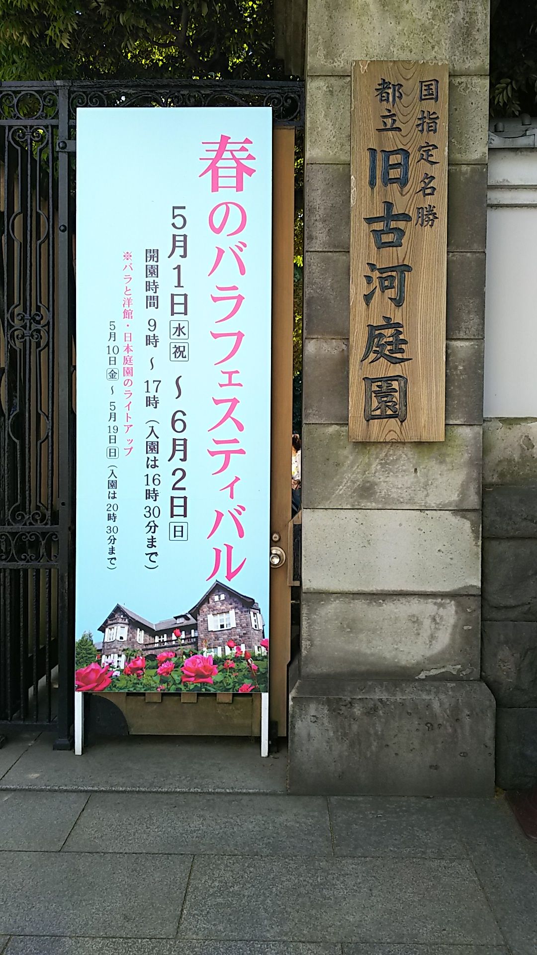 大正時代に建てられた洋館と庭園が都立公園として公開されていて、バラの季節には「バラフェスティバル」が開かれ、夜間のライトアップや野外音楽会などが行われています。