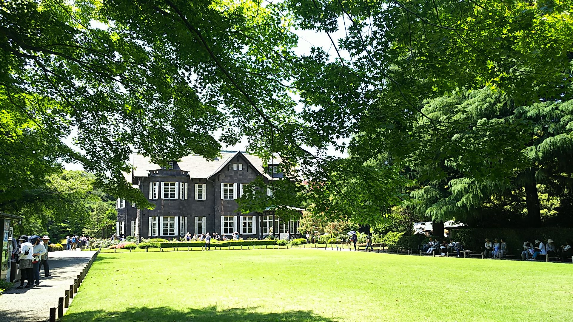 この洋風・和風の二つの庭園は、建物の2階から一望したときの調和が素晴らしいのだそうです。