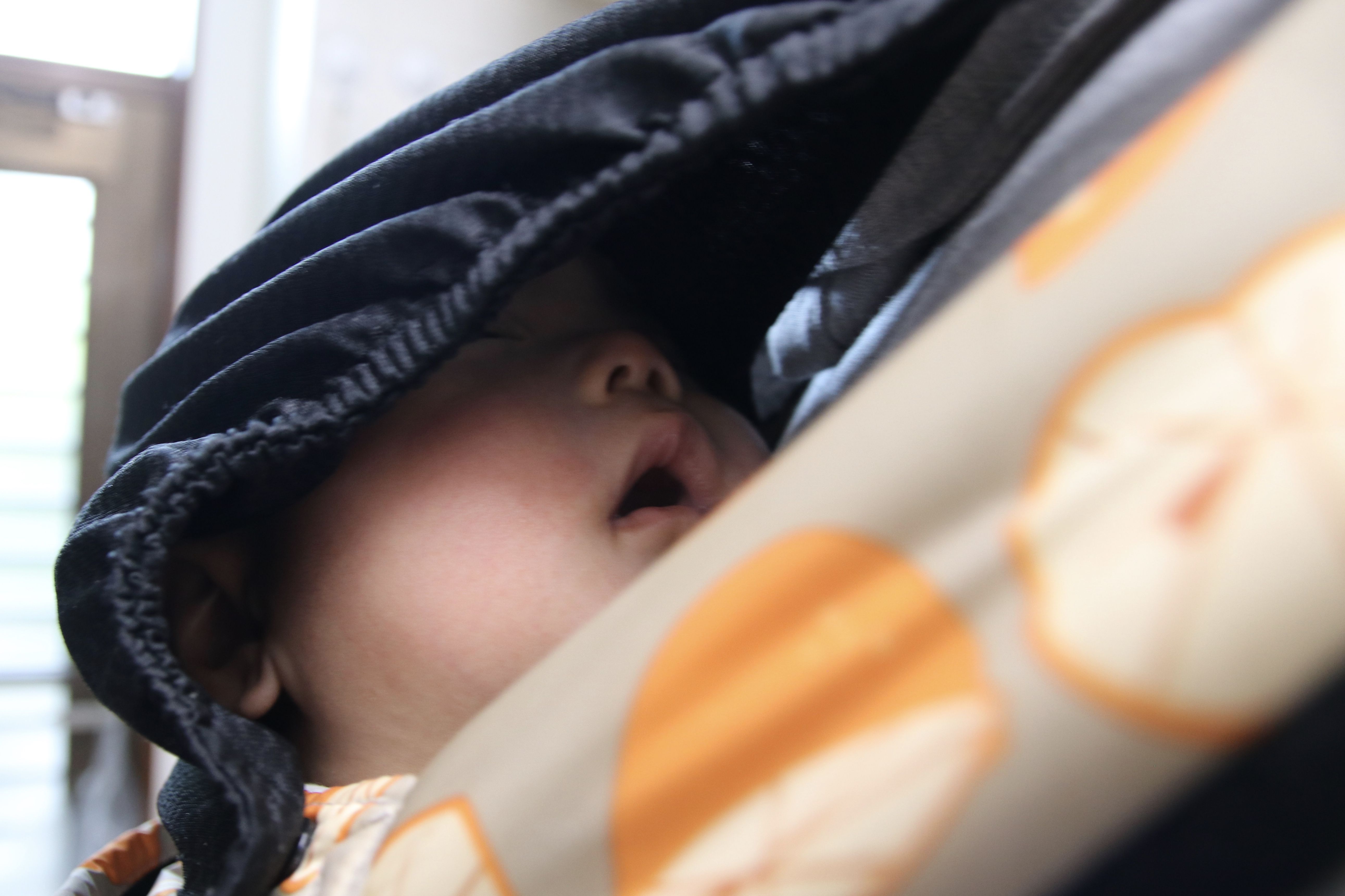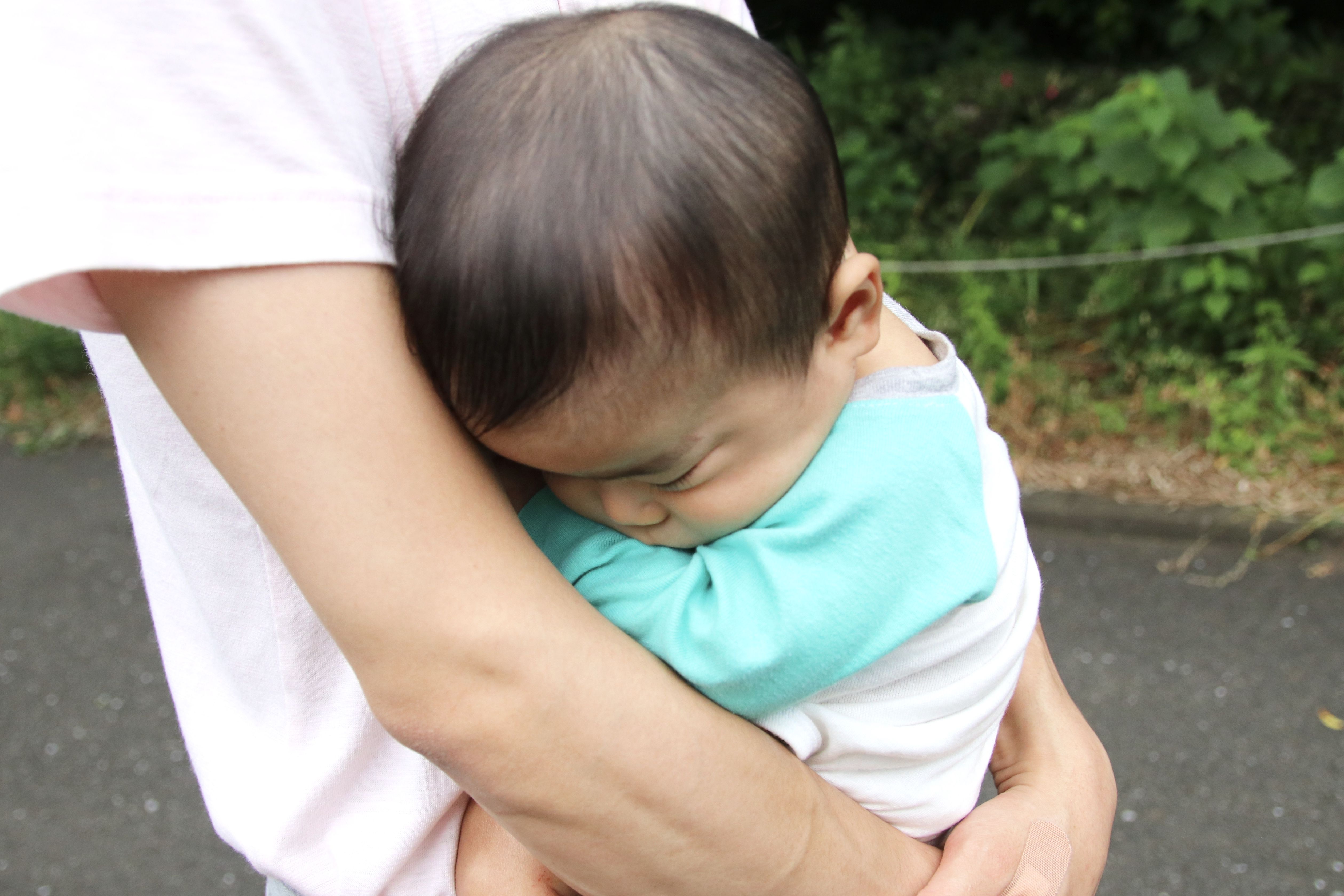 (5月15日。旦那におんぶされて爆睡する息子。)