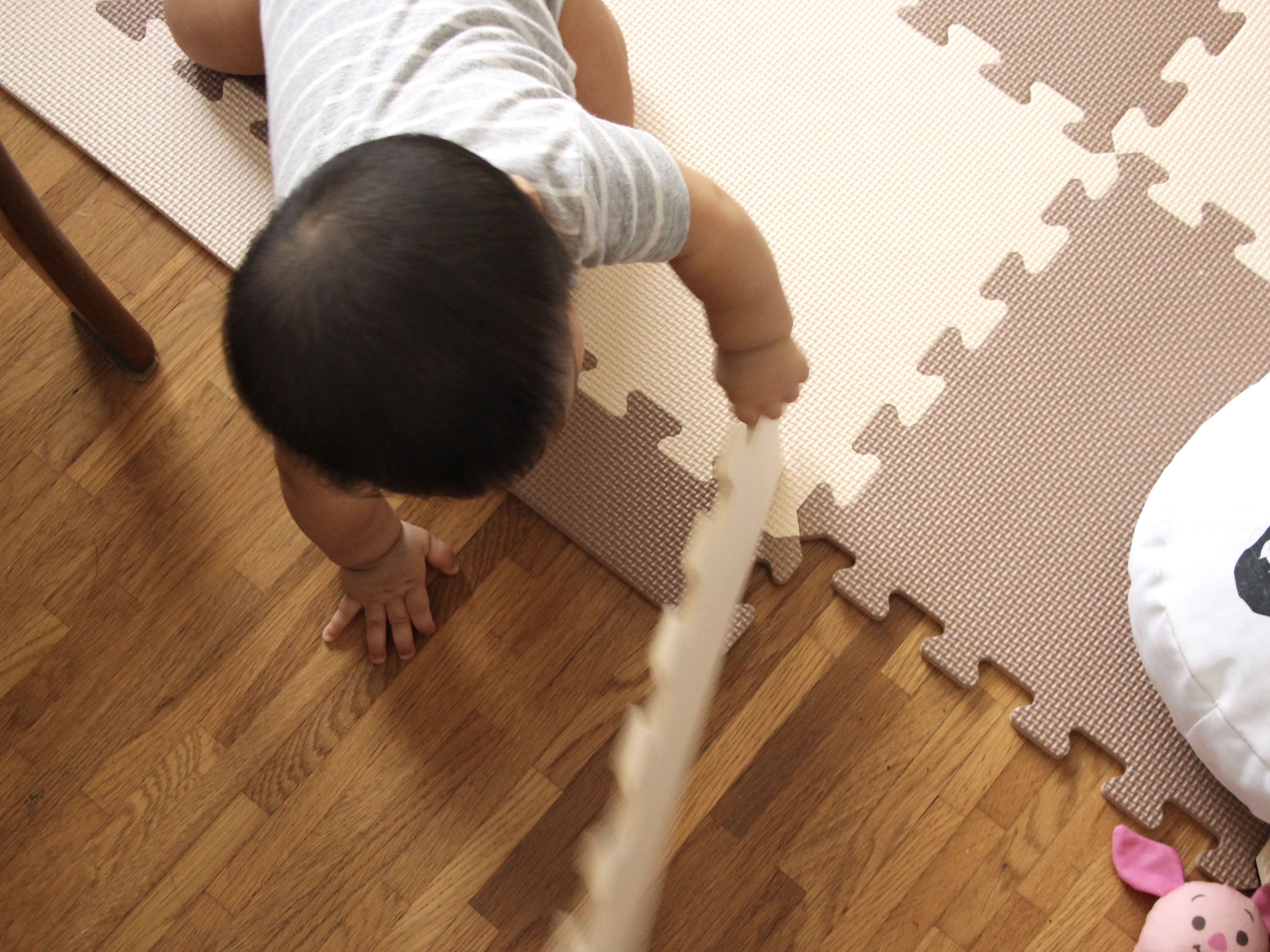 先日ハイハイができるようになったチビマタタ、どんどん自由に動けるようになって油断も隙もありゃしませんw